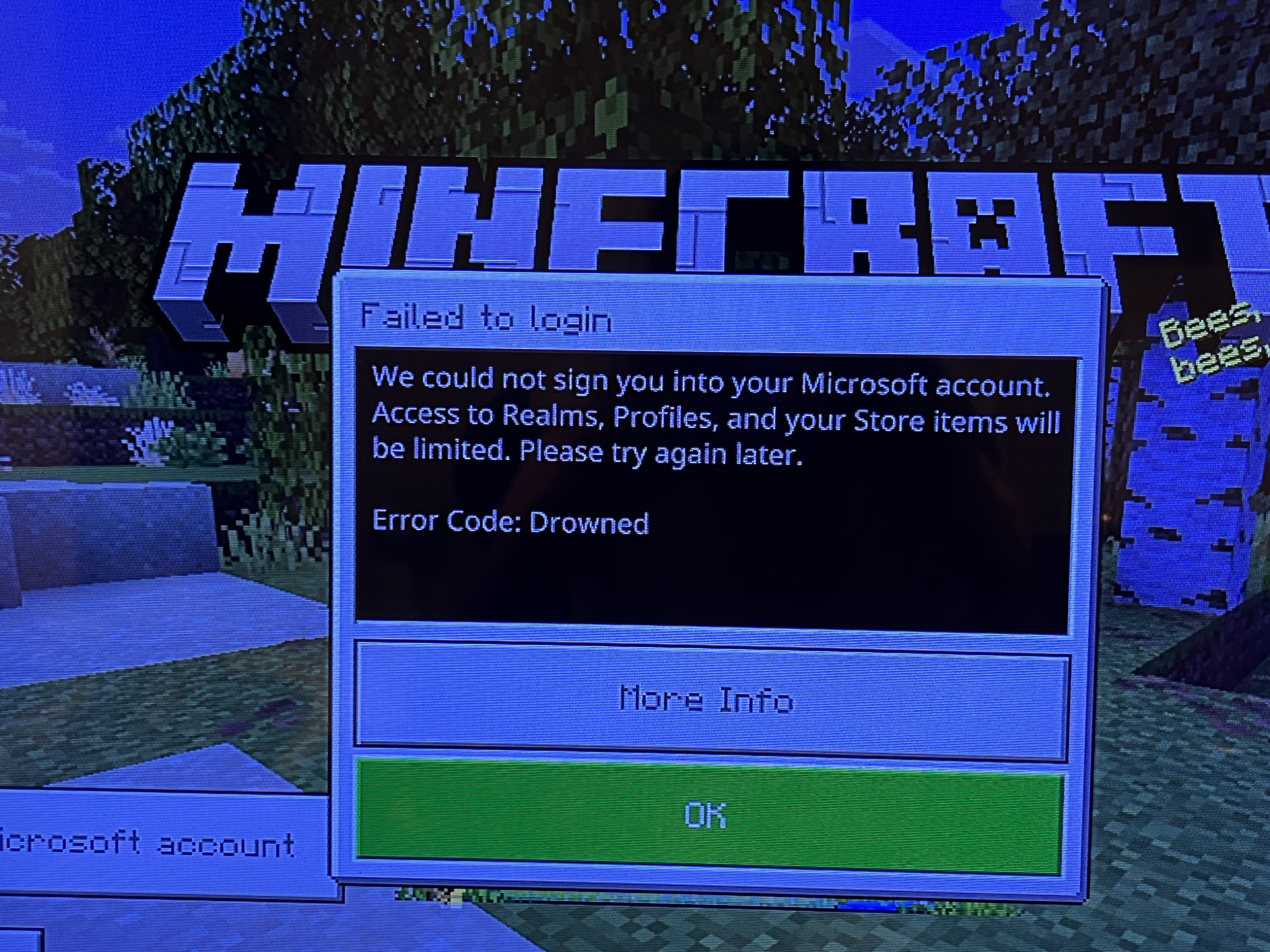 I’ve been trying to sign in to my Microsoft account on Minecraft for PS4, but I keep getting an error message saying something like "Drowned" or "Login failed". I’ve tried restarting the game, reinstalling it, and even resetting my internet connection, but nothing works. This issue has been happening for a long time and still hasn’t been fixed.
