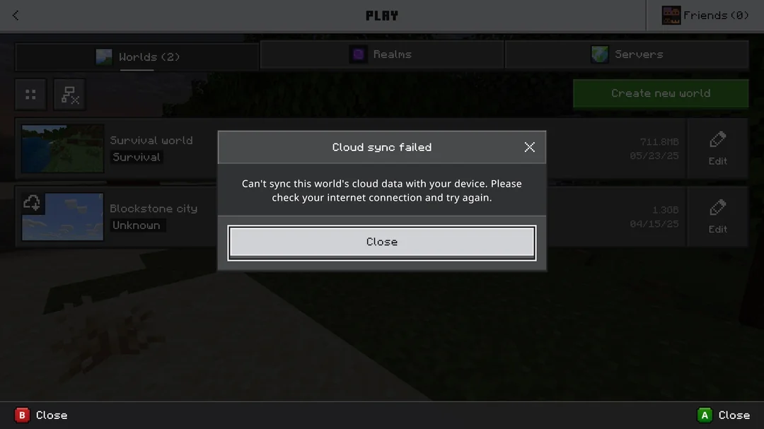 I have a nine year old Minecraft world that will not sync even though I have another world that should actually be bigger in size that actually did sync correctly.