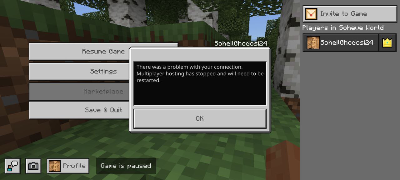 “There was a problem with your connection. Multiplayer hosting has stopped and will need to be restarted.”