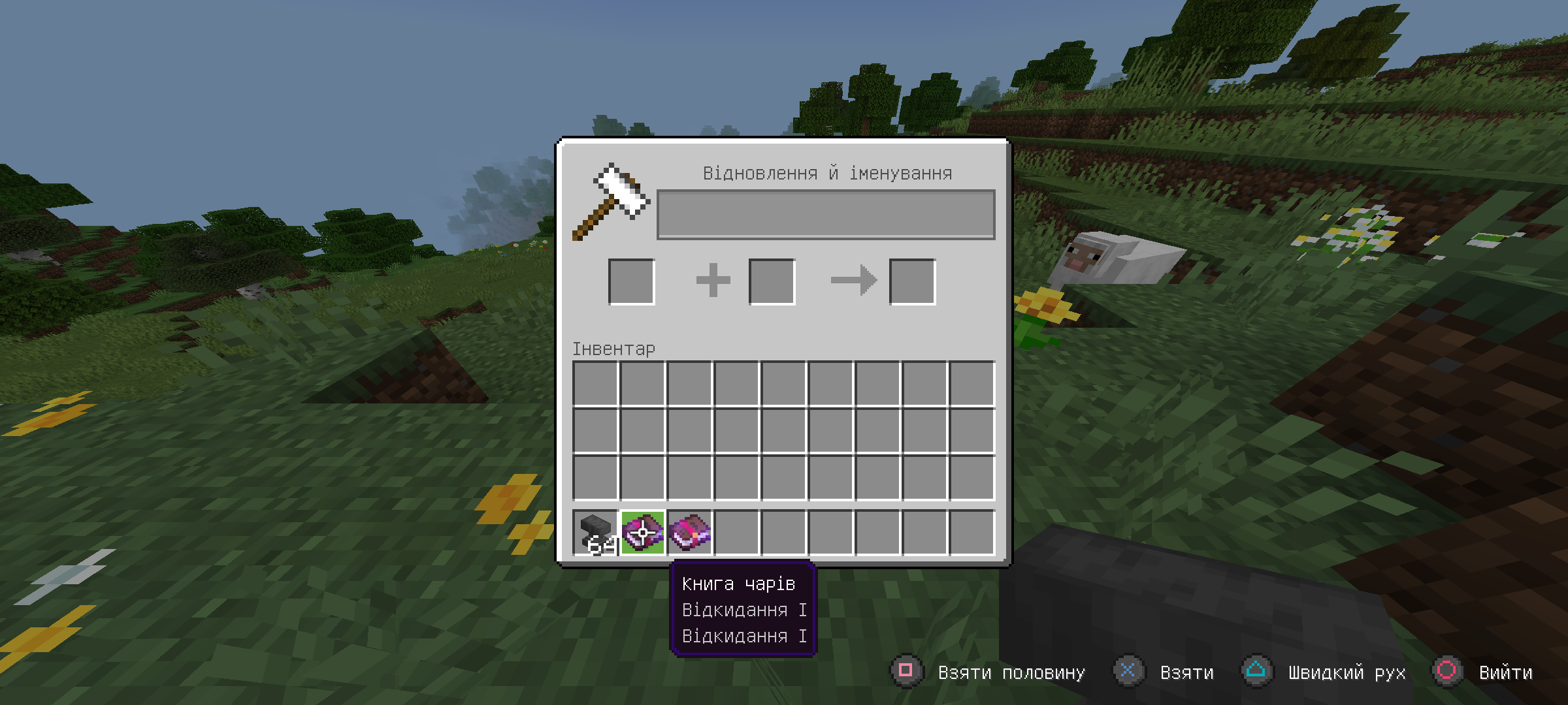 The two enchantments are Punch and Knockback — both translated as «Відкидання» (Knockback)