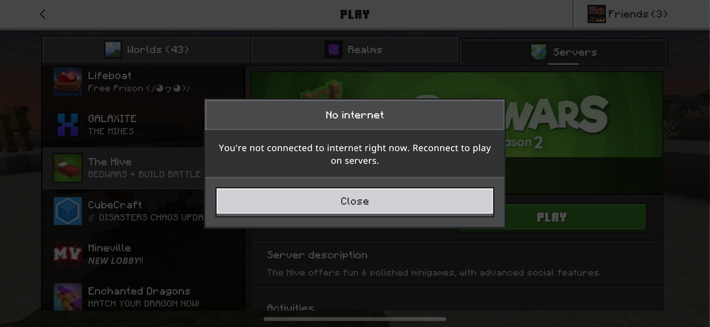I used to connect to servers just fine on mobile data, but since the world and servers screen changed it doesn’t work anymore even though both the device and the app use for cellular data is on. I can’t host multiplayer worlds either, but I can join other players worlds.