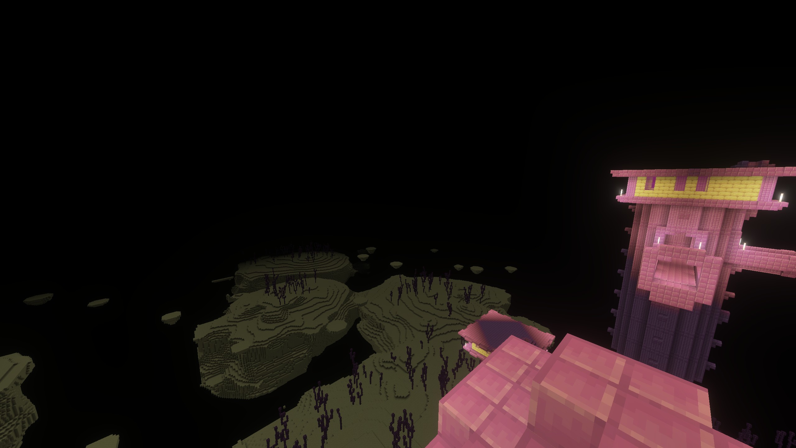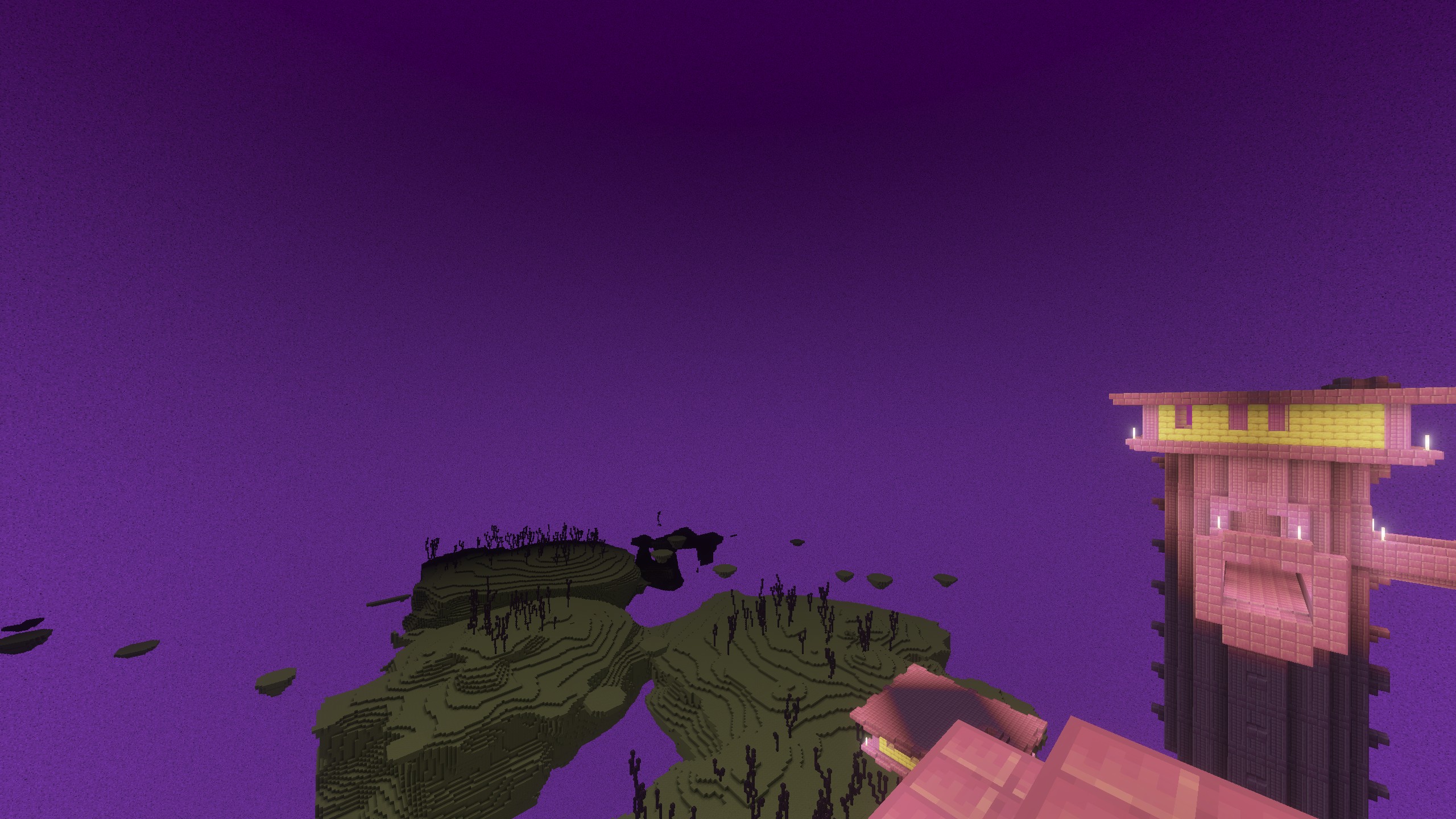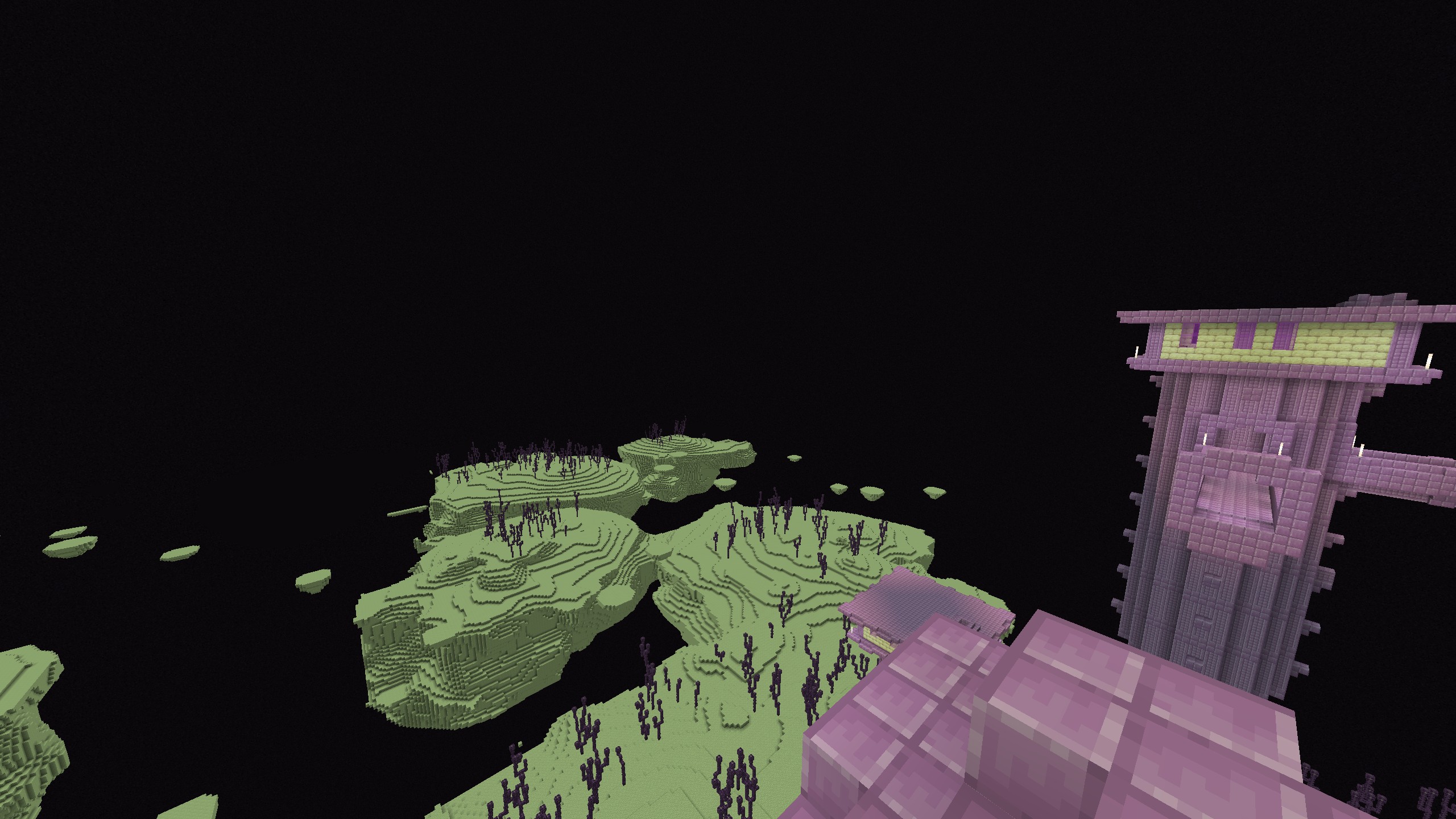 The end sky is completely black when there’s no end flash in the sky, and turn to purple for some time when a end flash occurs.