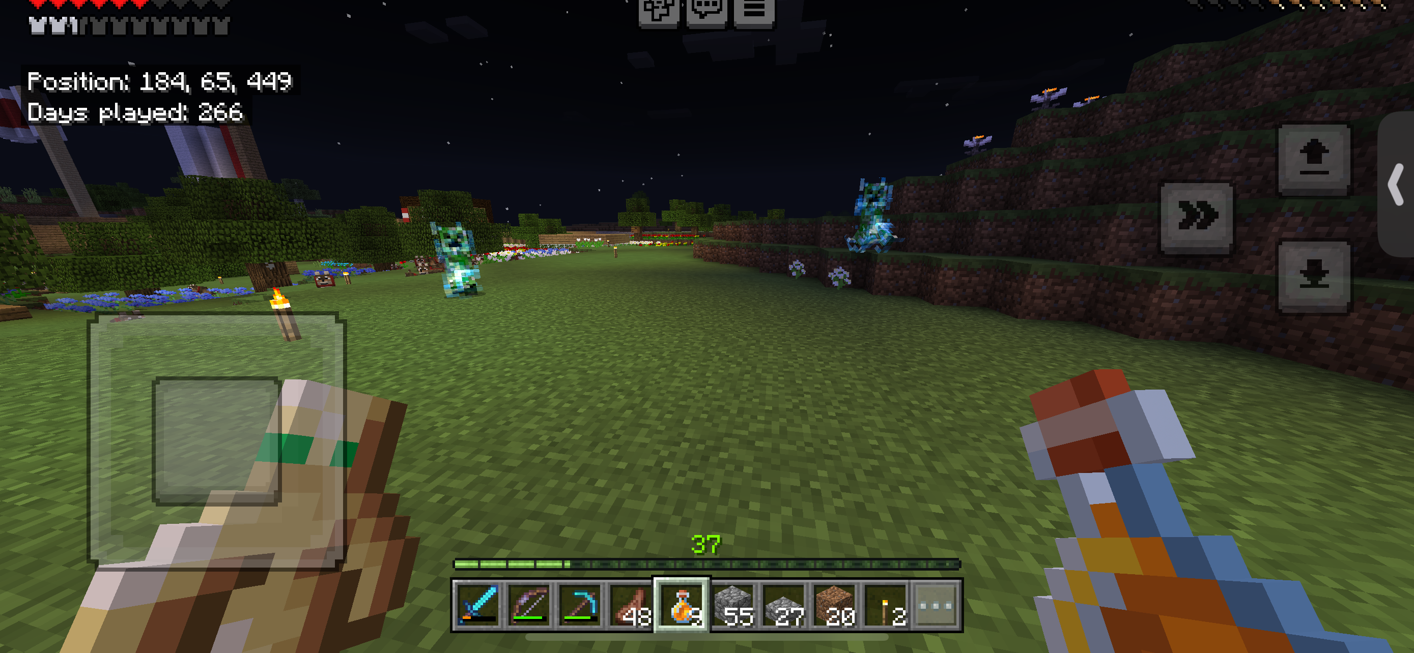 In Survival mode on Bedrock Edition, all creepers are appearing with a static blue aura that resembles the charged creeper effect. However, the aura does not animate and instead moves with the creeper’s body, behaving like part of its texture or skin. When the creepers explode, there are no increased explosion in size, no mob heads drop when killed by the supposed charged creeper, they behave like normal creepers in every way except visually.