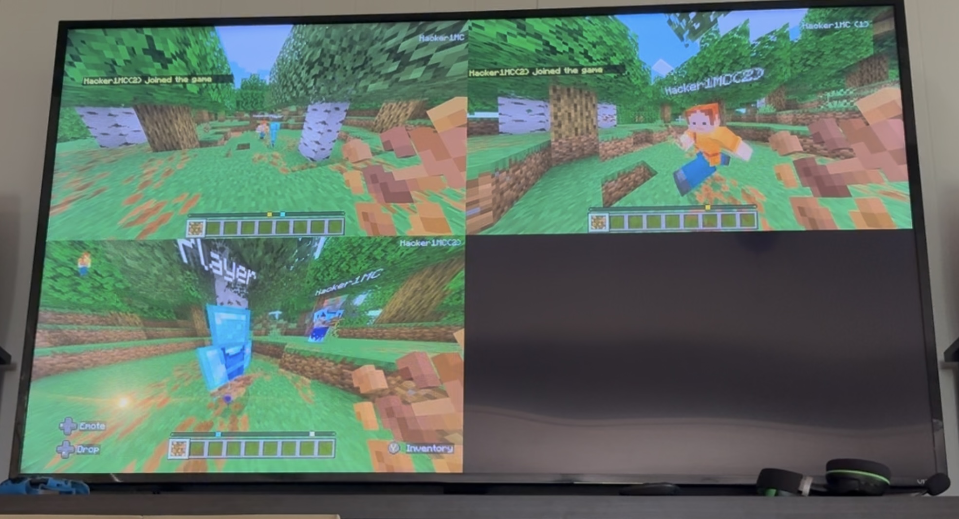 Sometimes, joining the world in guest accounts in certain orders causes a split-screen player to be added which is not controlled by or assigned to either active controller, forcing the user to join game again and have a useless player remaining onscreen, who can only be removed by kicking from the world players list menu. This is not entirely new to the 1.21.90 cycle.