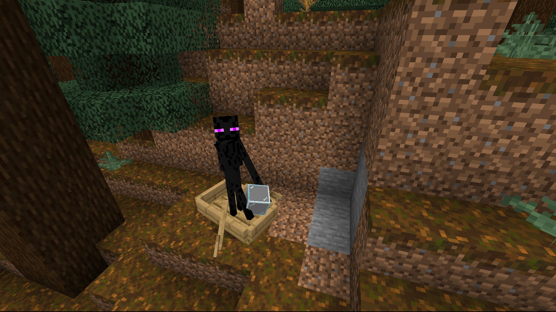 Ensure the enderman is sitting in the boat. If the enderman happens to teleport away immediately, redo step 2, then redo step 4, and then proceed to step 5 again. Otherwise proceed to step 6.