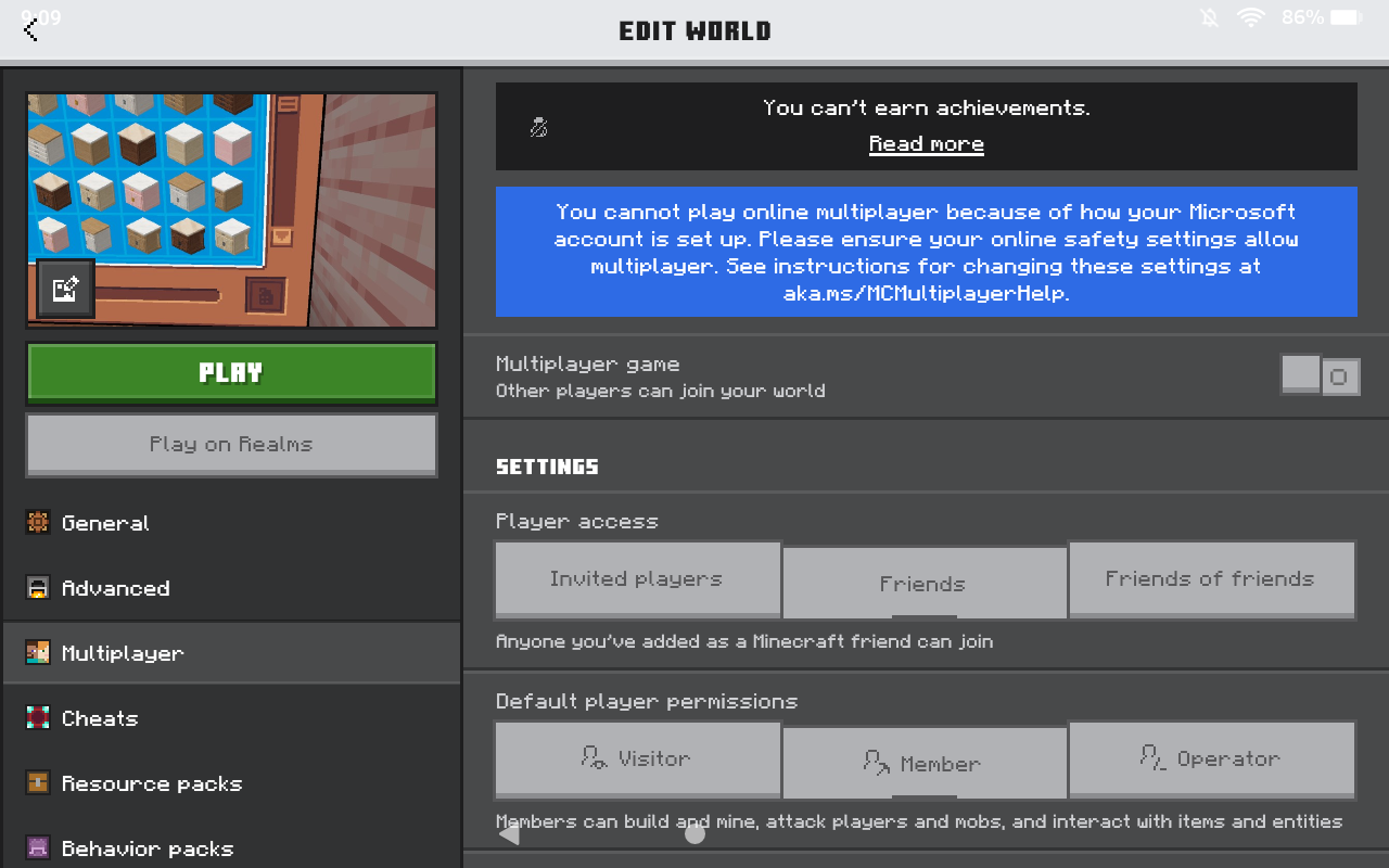 "Since the new update to the play button platform, I have encountered numerous issues with multiplayer settings." "Previous worlds that had enabled multiplayer settings are now disabled." "The articles provided have not resolved these problems," and "I am certain others are experiencing similar issues." "I look forward to seeing these matters resolved promptly."