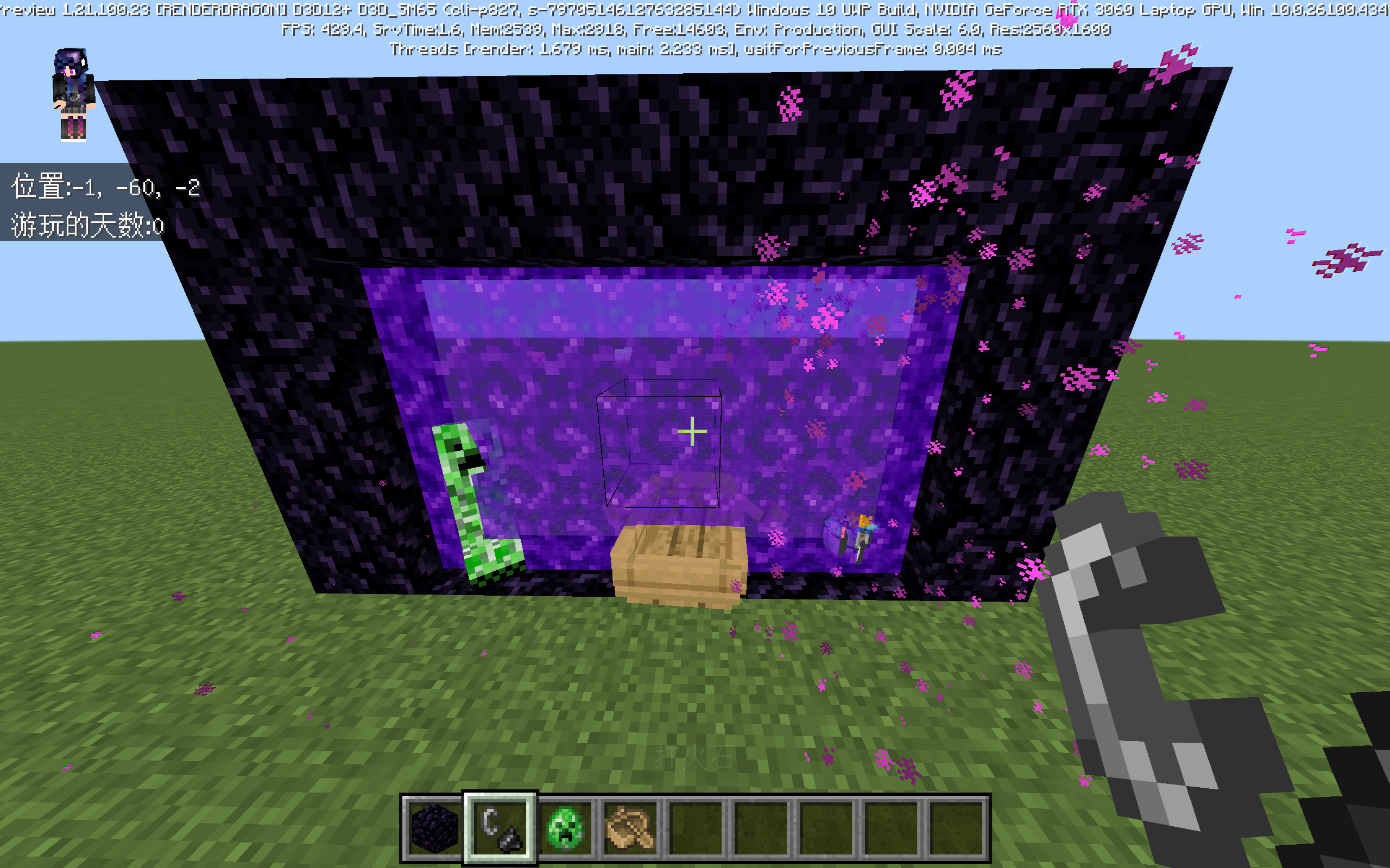 Non-player entities remain inside the Overworld portal frame without being teleported.