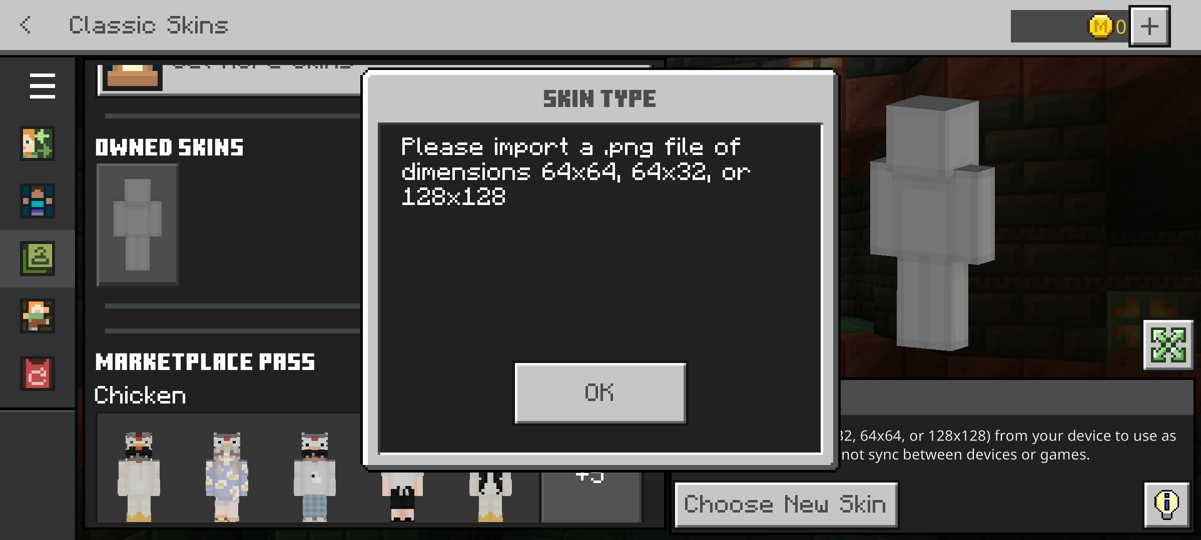 On Android 13 and above, Minecraft Bedrock Edition cannot access custom skins from the gallery when attempting to import a skin. The file picker either shows no images or prevents selecting them.