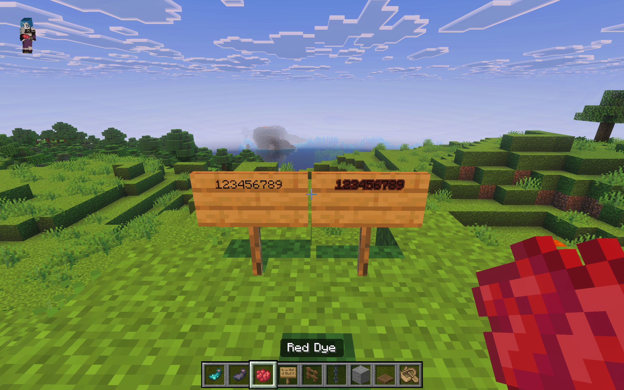I’ve noticed that when I dye a sign’s letters regularly while using Vibrant Visuals, it doesn’t change color at all. To produce a color, I have to use a glow ink sack. However, even when that is done, it is very dull and barely produces any glow at all. This is not the case when using Fancy or Simple graphics, since the sign’s colors appear brightly both dyed and glowing. My vibrant visual graphic settings were all on high, so I don’t believe it was a graphics issue. Thank you!