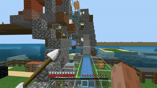 I have attached a world and set it up to simulate survival with a few circuits to make the process faster. The orange one spawns in a ton of chickens using spawn eggs. This is to give the survival feel.