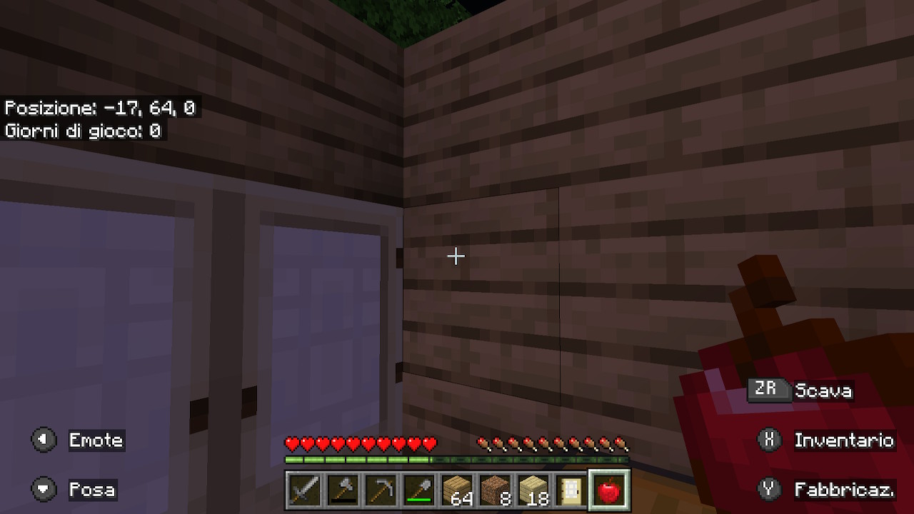 Open a world in survival, then eat the apple when you are full bar of hunger.