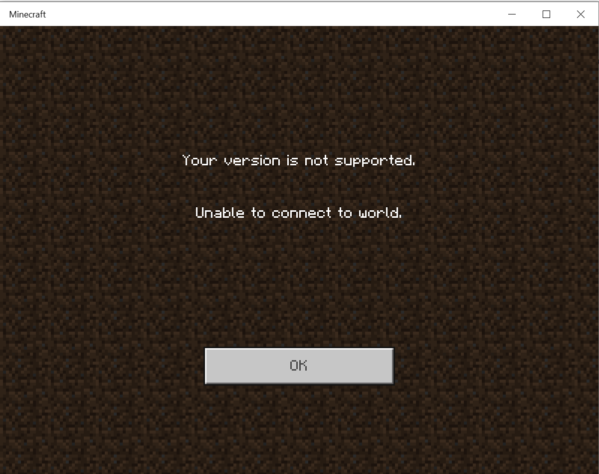 Attempting to setup/connect to dedicated bedrock server with latest available version of both server/client side results in “your version is not supported” error.