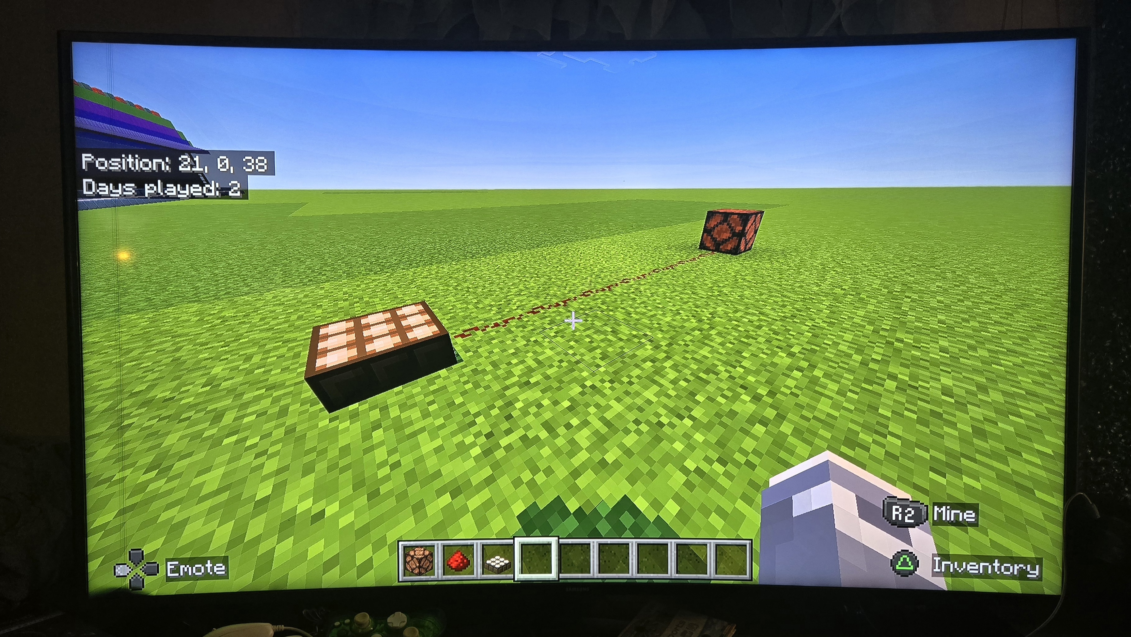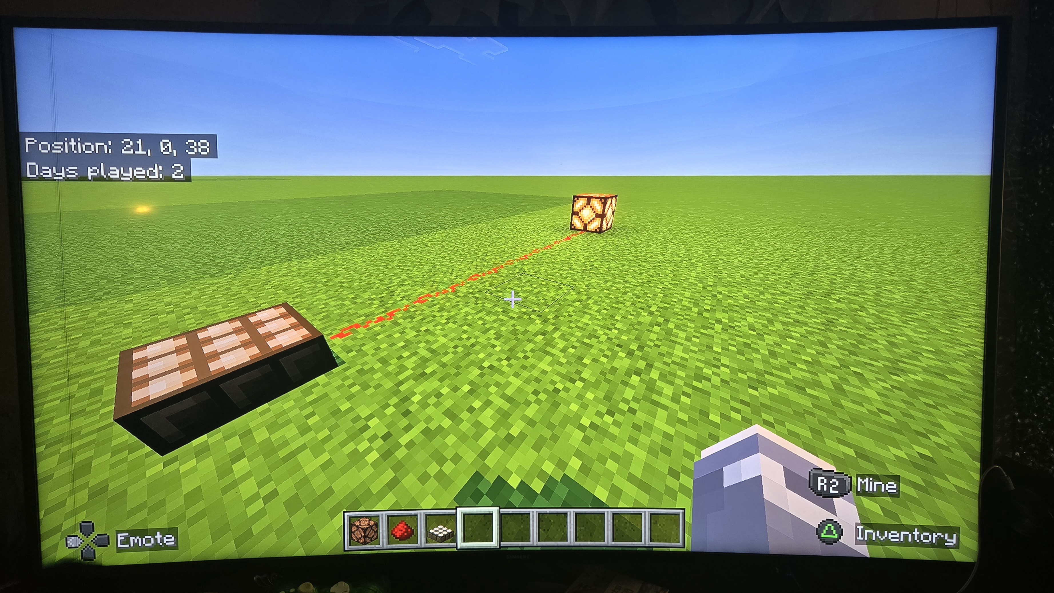 2.5) Build a simple redstone circuit to a redstone lamp, place a daylight detector, and observe no redstone signal.