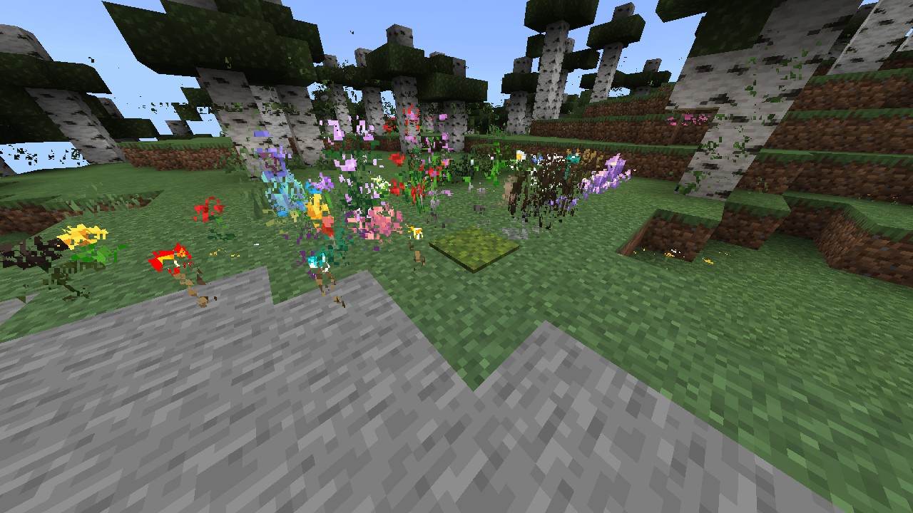 All types of leaves, flowers,carpets,shards,dripstone,torch and vines have texture bug where their texture are flickering continuously also some leaves are completely invisible