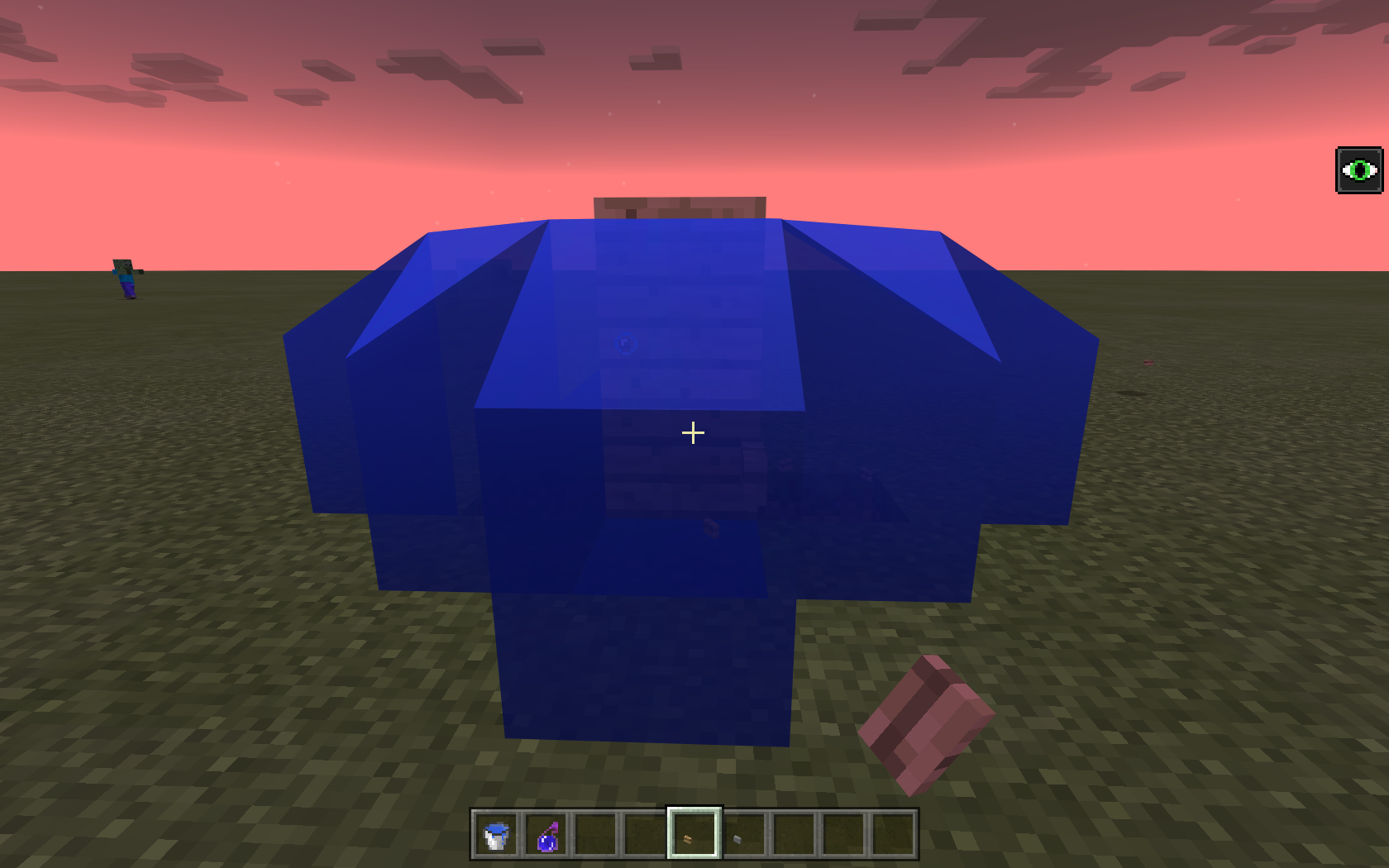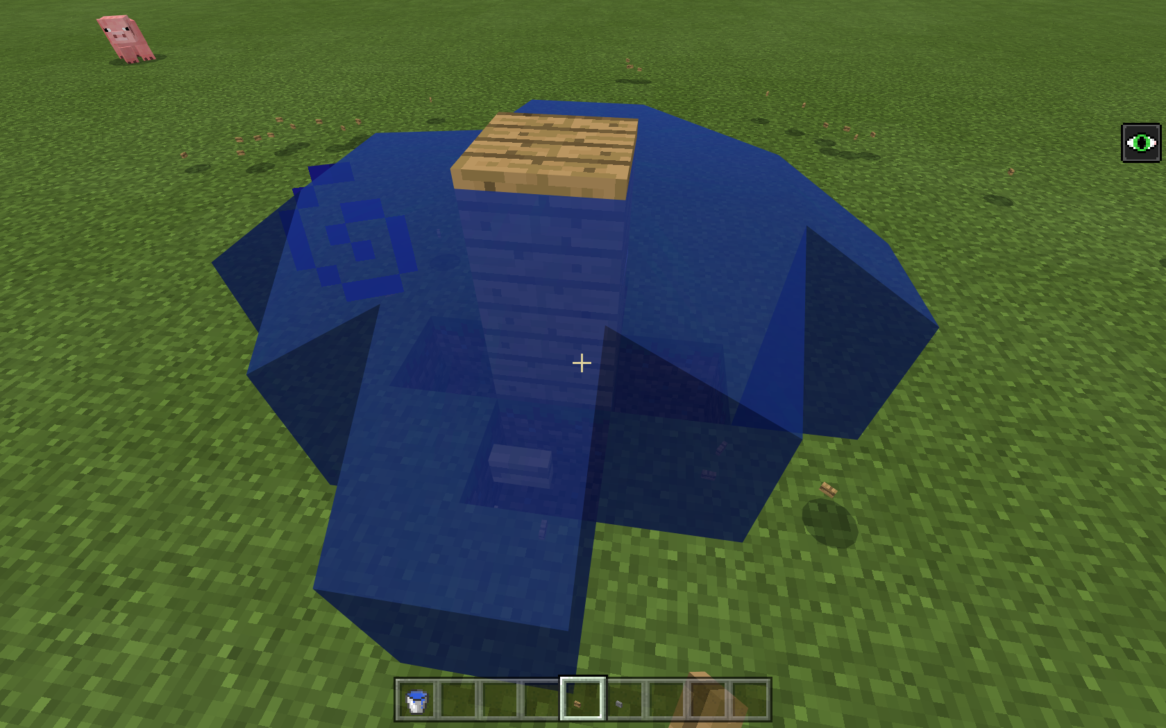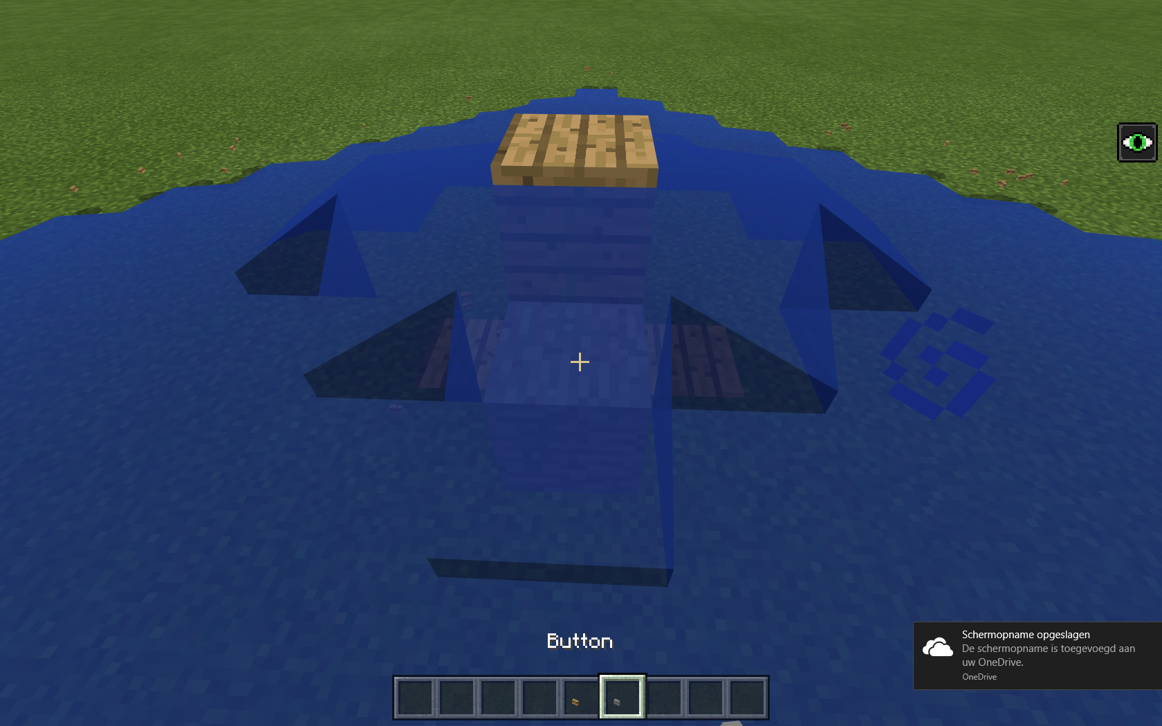In one direction a button appears as a block (stone and oak wood planks block)