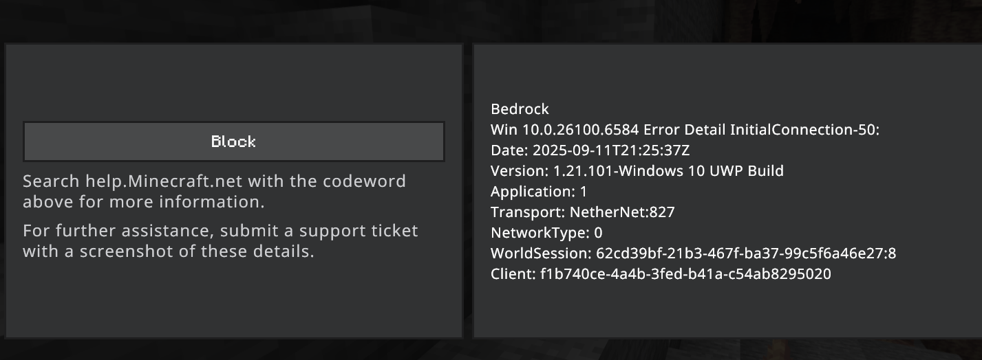 Executing a ?slashcommand URI in Minecraft Bedrock results in the user being unexpectedly disconnected from the world.