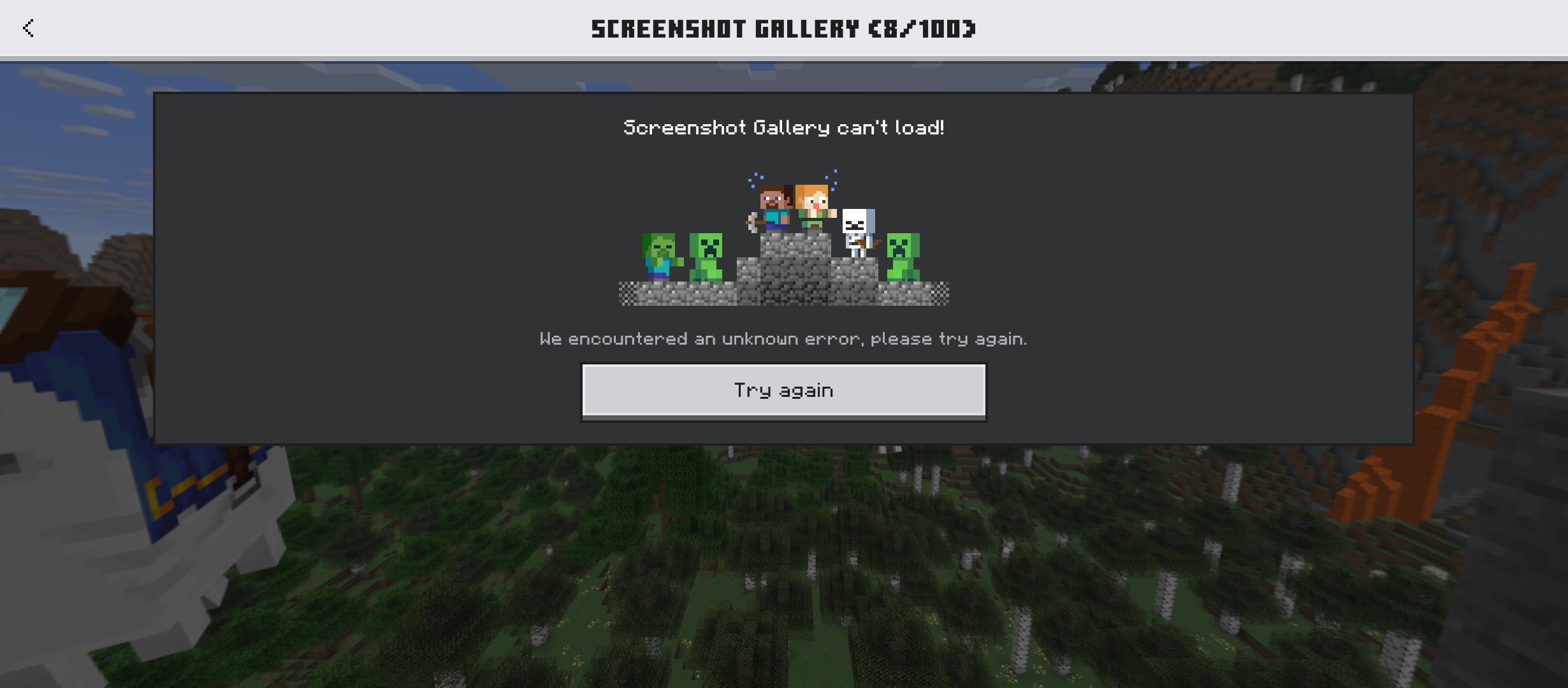 When I go to the in-game gallery, it shows the message "Screenshot Gallery can't load!" and doesn't display my images. I've already tried the "Try again" button, and I've also restarted the game and my phone, but nothing has worked.