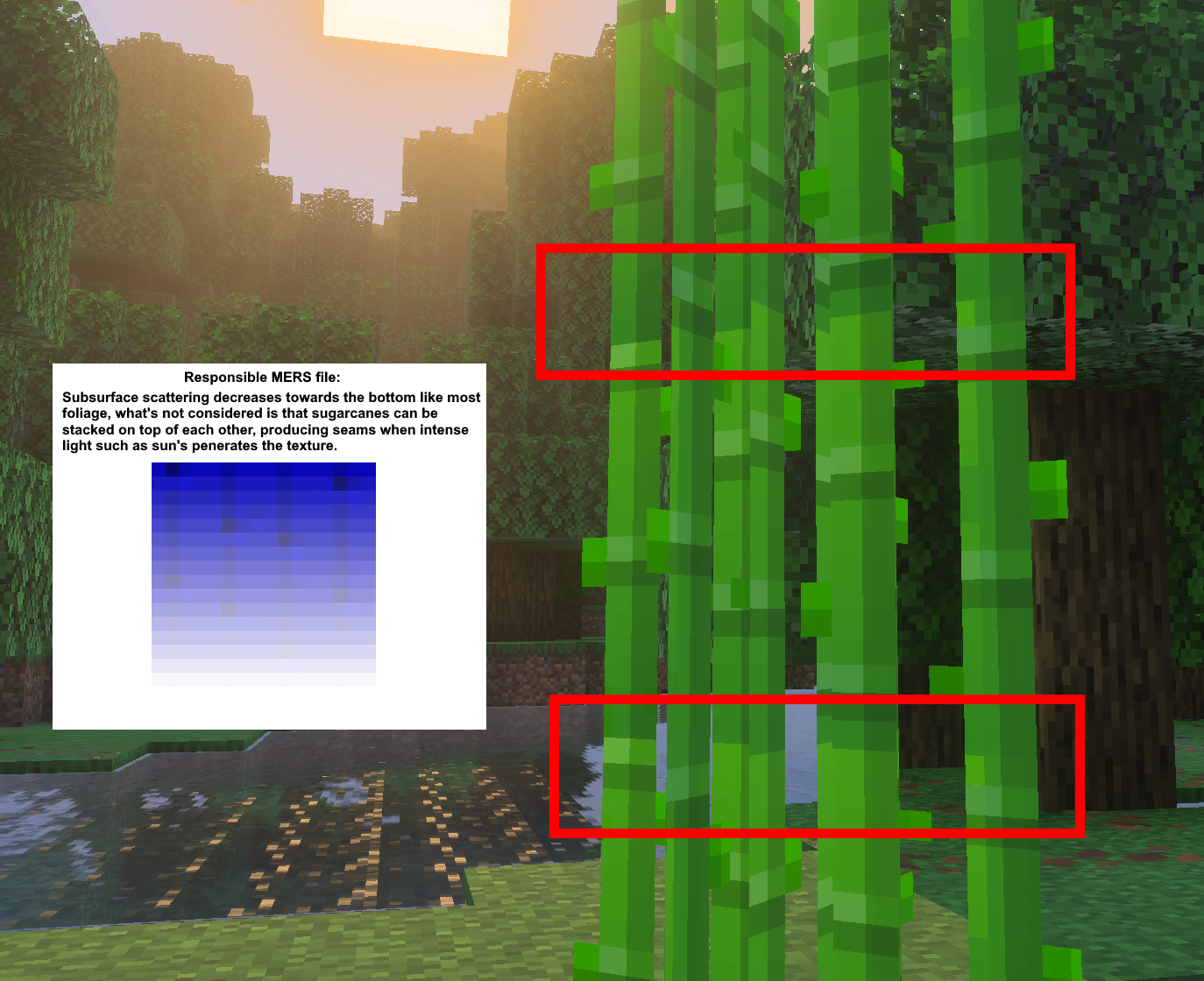 This works for most foliage, but for sugarcanes which are stacked on top of each other, it will produce seams when a strong light source is present.