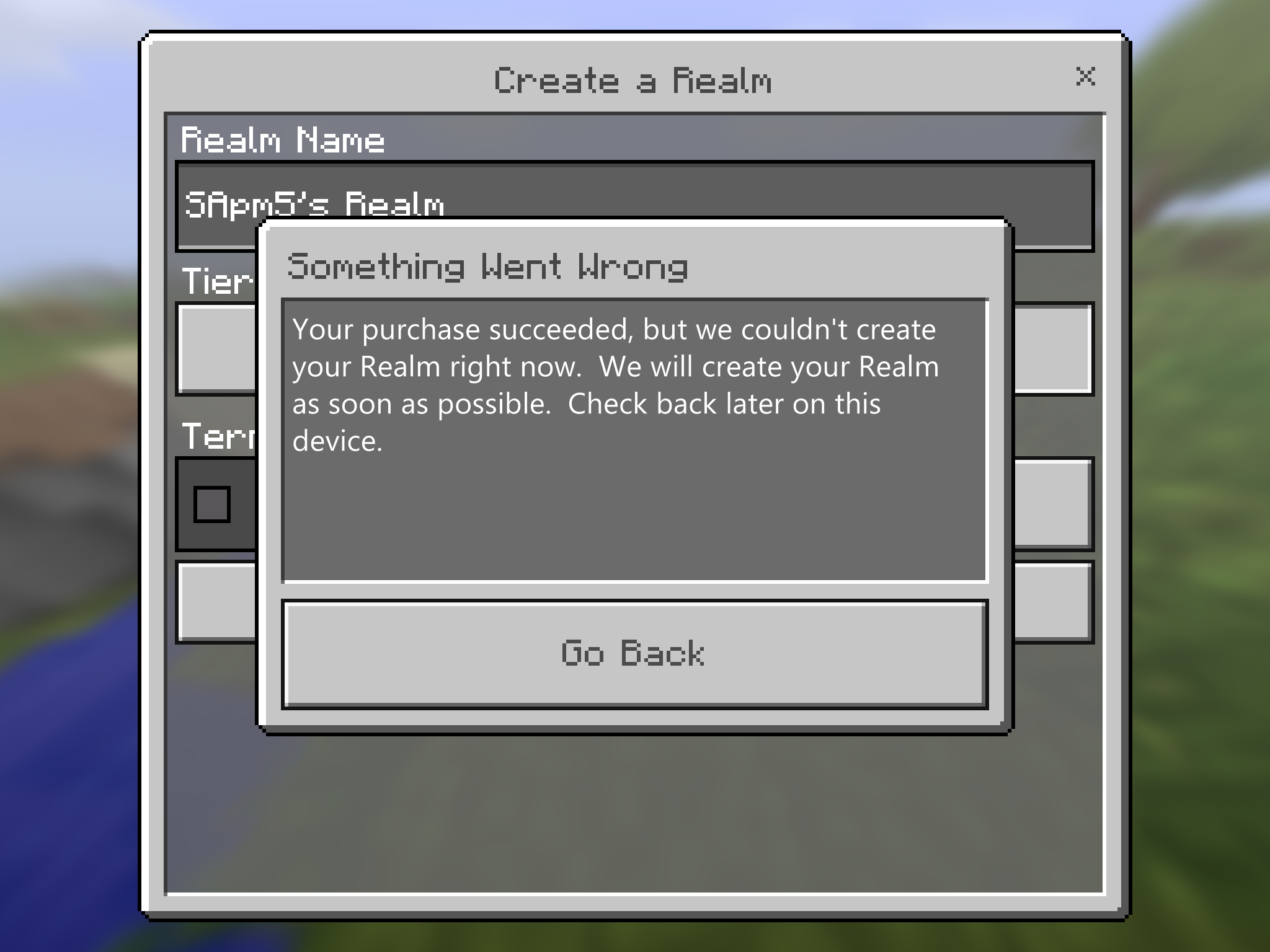 I had a Realm before but then expired so I decided to purchase a NEW realm. I payed for it but then it said the purchase was completed and to check back later. It's been a few weeks now and I still don't see the Realm on my account. After checking my Apple ID it says the subscription is currently active. So I spent $12 (including tax) and I didn't get my realm. I messaged the help area from Mojang but after discussing it with them they directed me to send this in as a bug. So please fix this issue as I have payed for a realm and haven't received it yet. Additionally I don't know why but I can't change the name of my realms.