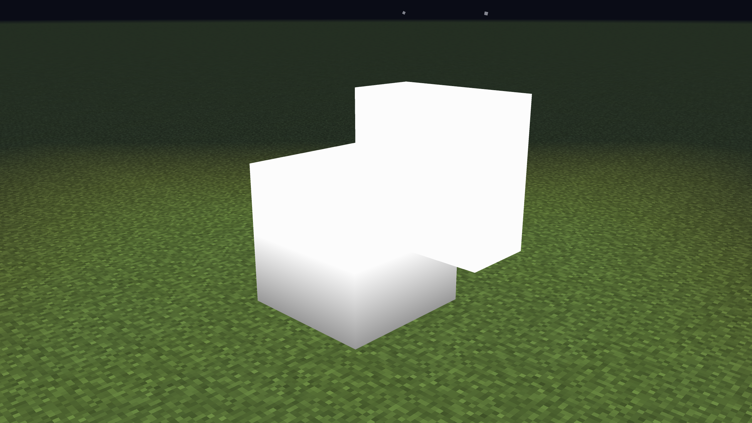 /time set midnight, then place many instances of this block together in the air - not touching any other vanilla blocks or any other types of custom blocks. Verify that there is no ambient occlusion between these custom blocks by themselves. (Image attached).Place down one of these blocks on a grass (or ground) block. There will be noticeable shadows around the base of the block. (Image attached).