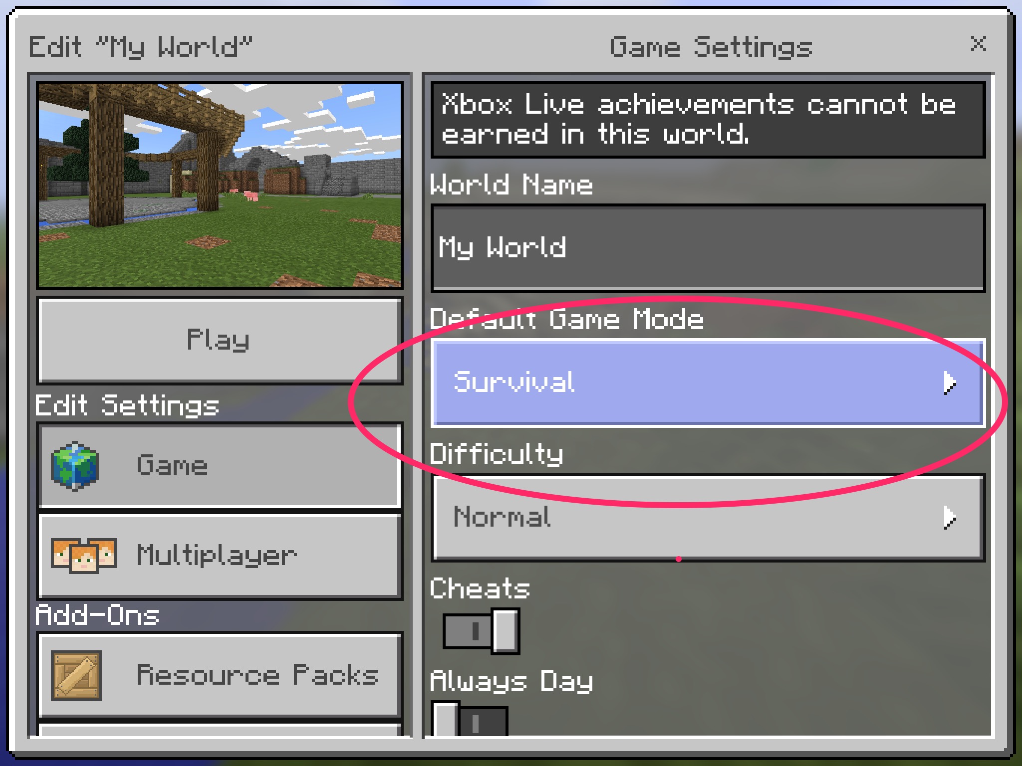 New worlds I create after the update and worlds I had before the update, do not switch between game modes (creative and survival). If I try to switch an old world (that was on crestive before the update) to survival (after the update), I am unable to do so. The game will say that I have switched, but when it comes up to play I have no health or hunger bars. I can still access the creative inventory and I am still able to fly. This is the same is the same if I start a new world in creative and switch to survival.