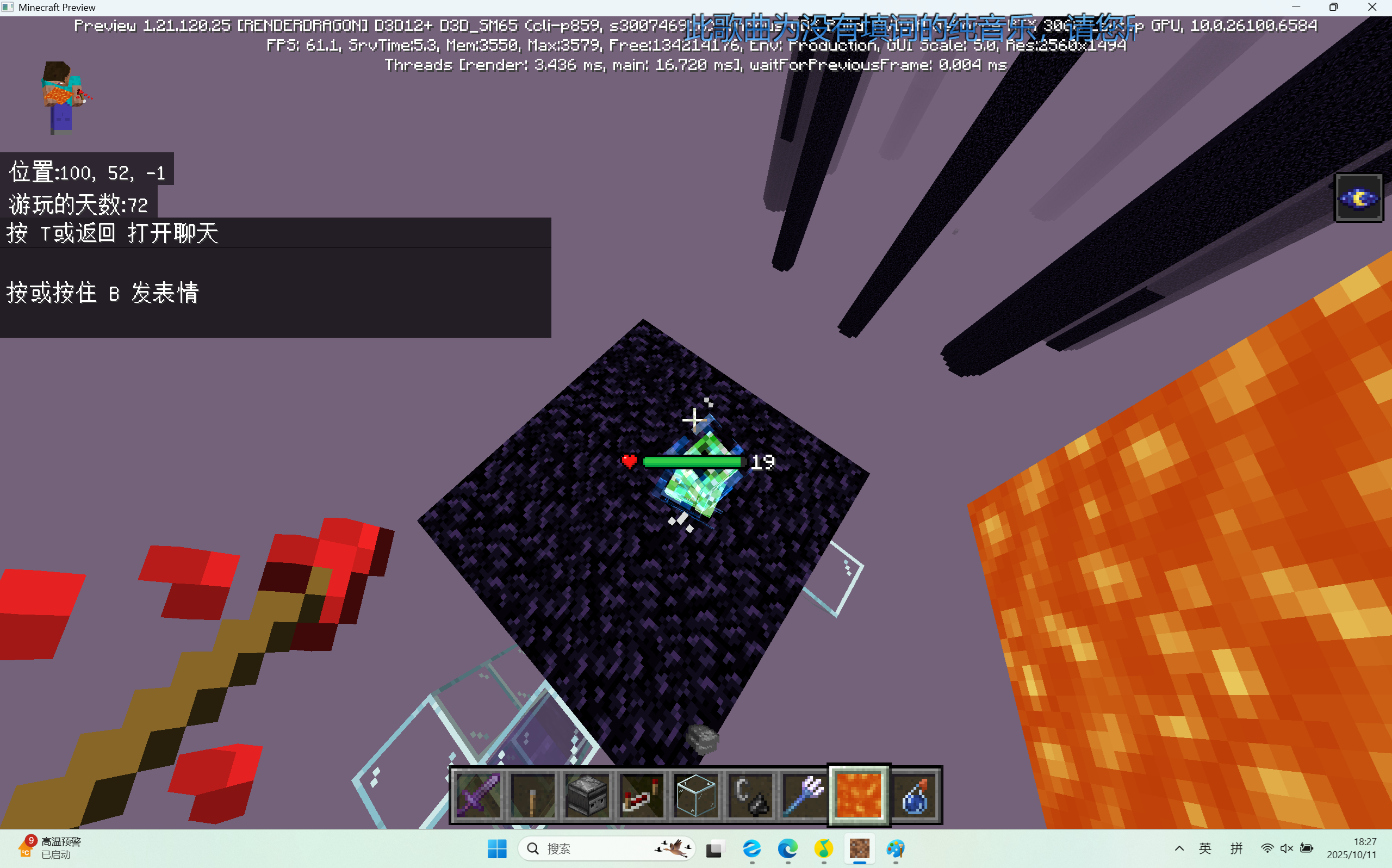 In Bedrock Edition, contact with lava inflicts two types of damage: 1 point of fire damage (which sets entities on fire) and 4 points of direct lava damage. However, the timing of these two damage applications is not synchronized. This inconsistency results in situations where entities briefly touching lava only receive the 1-point fire damage without taking the full 4-point lava damage, contrary to intended behavior.