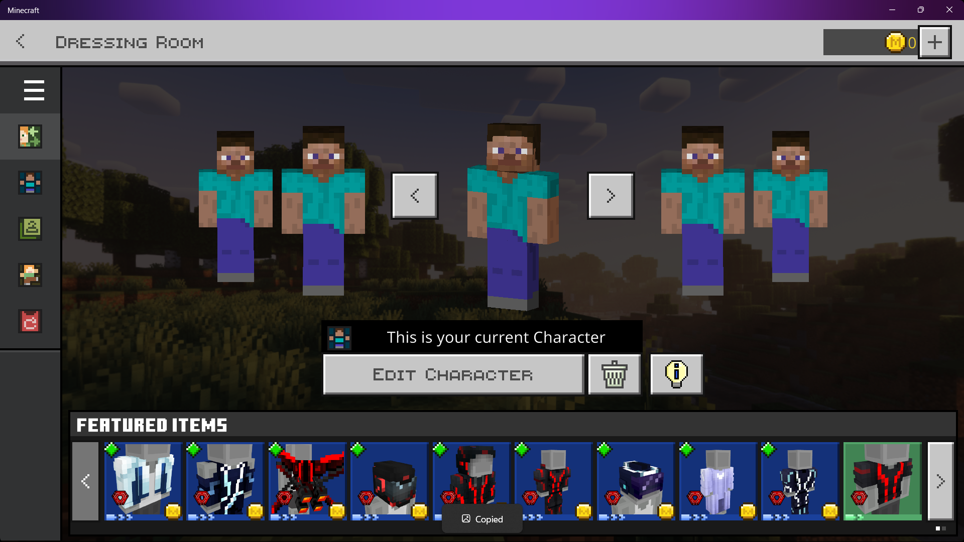 Open the Character Creator and select any custom skin made in the in-game Skin Editor.