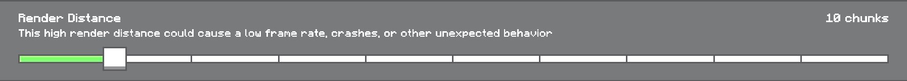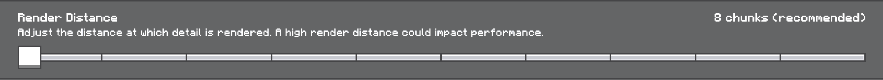 On both the high-end and low-end devices, the game recommends the lowest render distance (8 chunks). Raising the render distance triggers a warning about possible crashes or performance issues—even on the high-end device, where this warning does not reflect actual performance.
