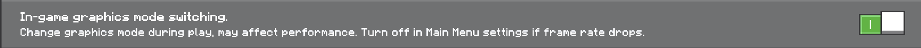 Locate the In-game graphics mode switching and Change Screen Safe Area options.