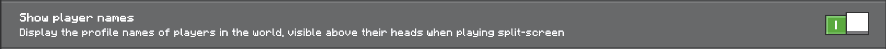 The description states that the option only controls the visibility of player names above their heads in split-screen mode. However, the option affects player name visibility in all multiplayer scenarios (Realms, LAN, Dedicated Servers, etc.).