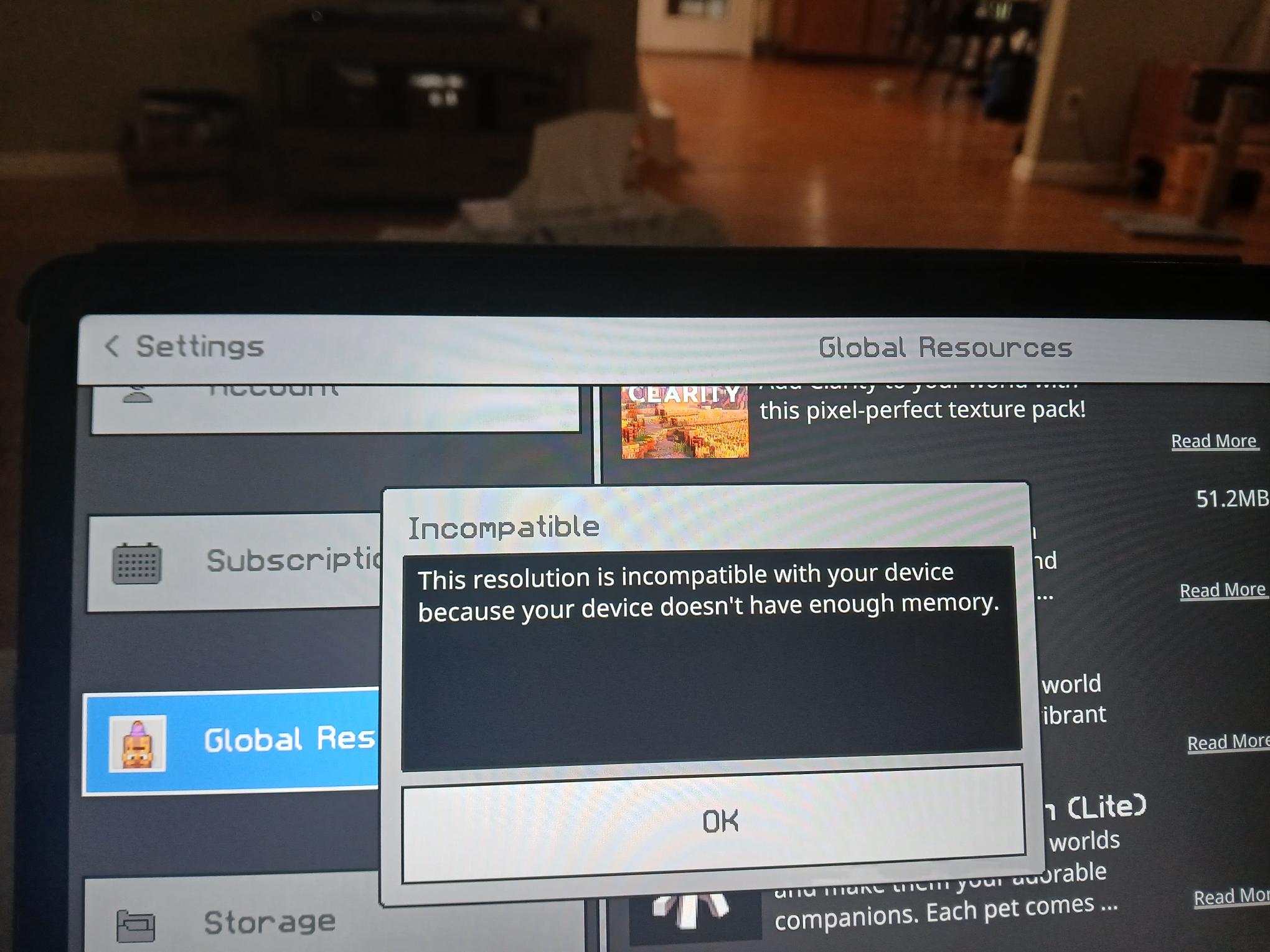 This morning my Minecraft was not opening at all on the laptop. I canβt provide a screenshot of the error when I load the texture pack from the laptop. But it was the same as the Kindle. I have been enjoying this pack for years on both devices. Seamless No glitches. Updated last week and suddenly canβt use on either device.