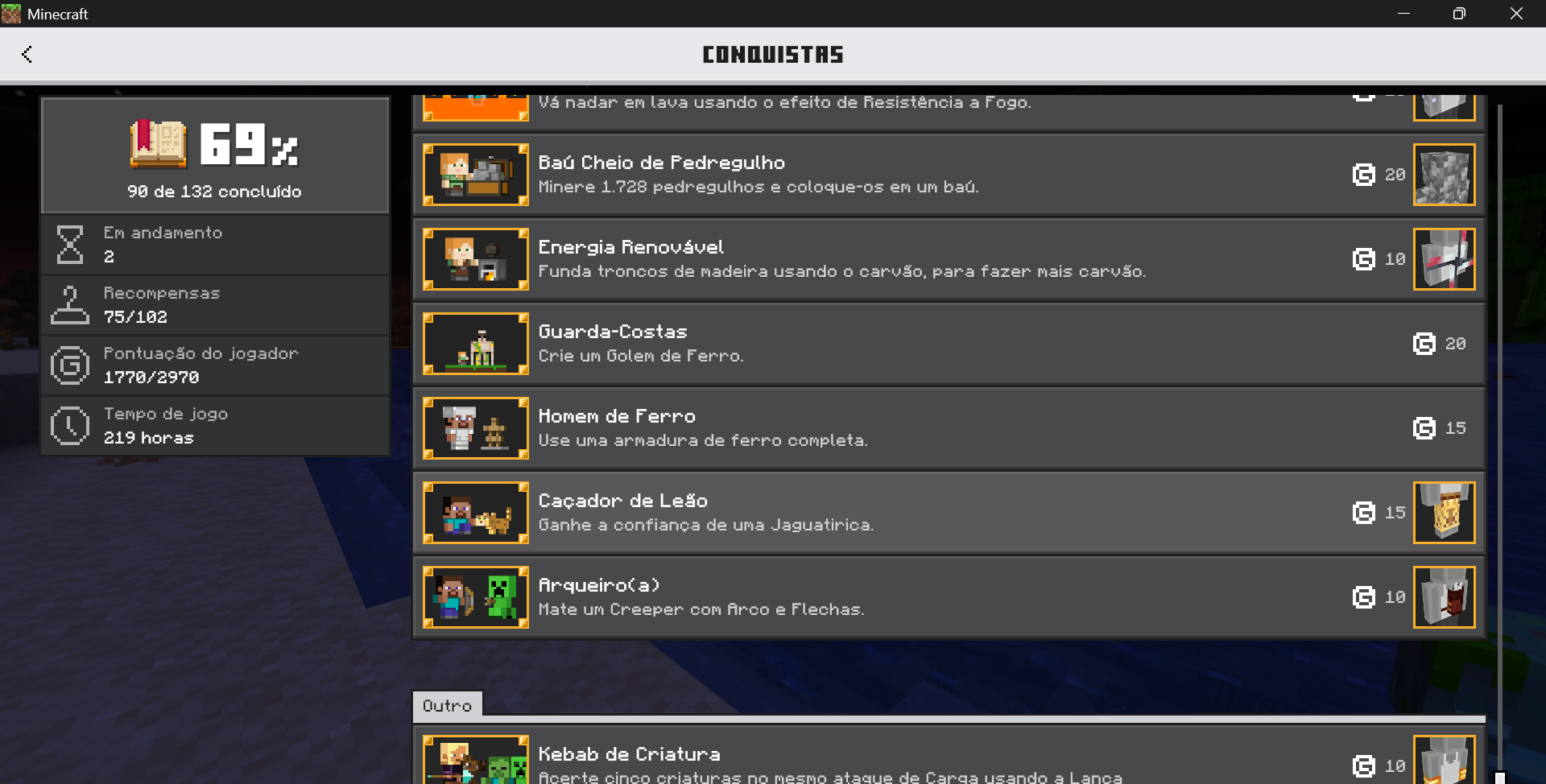 Observed result: Mob Kabob is the first achievement, in a section called “Others”