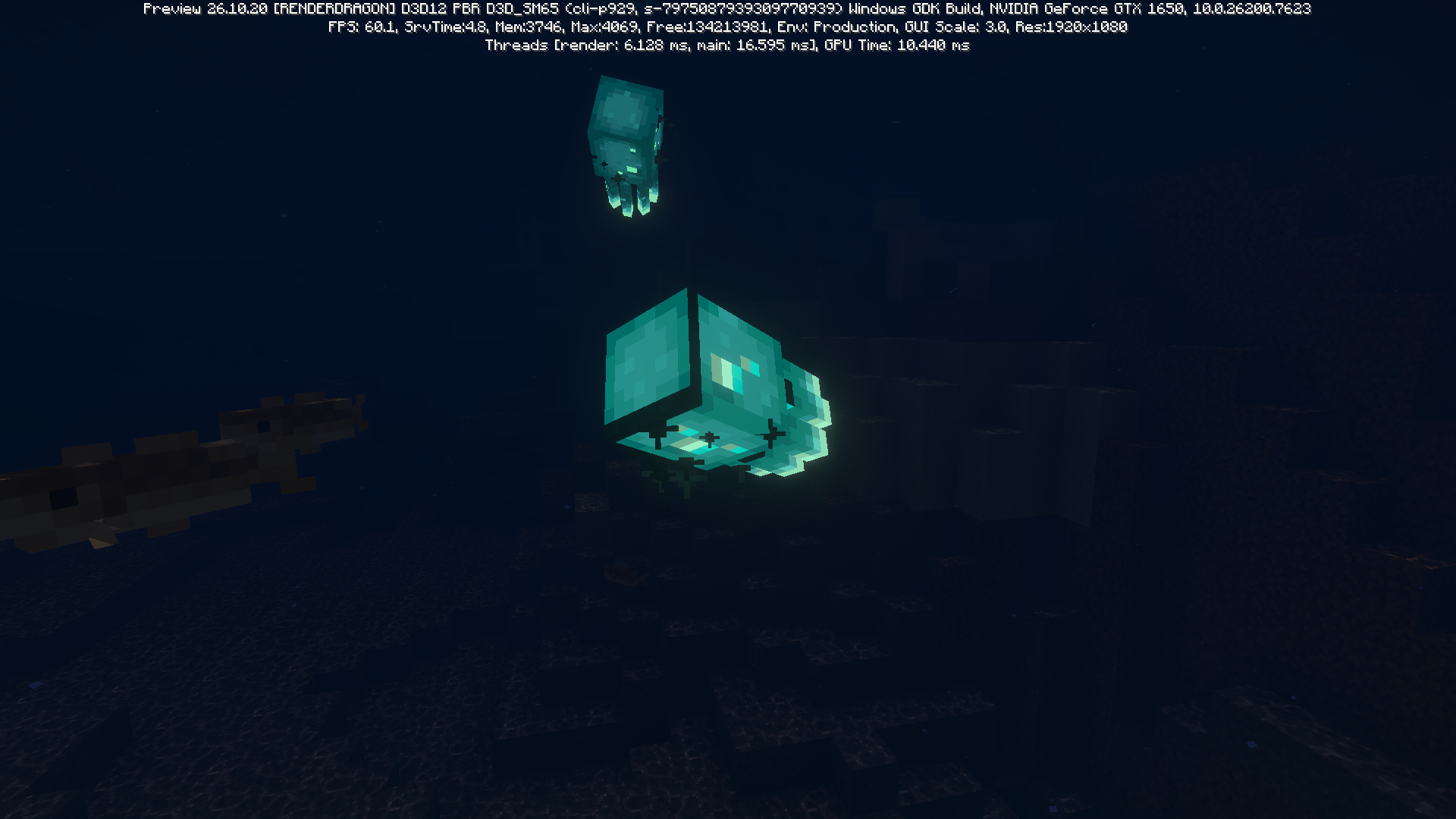 The baby squid’s MERS texture is offset, causing visible streaks of darkness in spots that should glow when Vibrant Visuals is enabled.