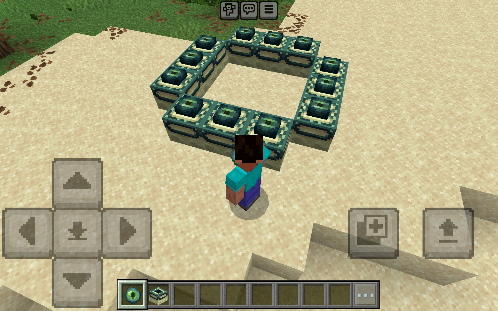 Make sure the Eyes of Ender are placed correctly to activate the End Portal. Stand inside the 3x3 frame while placing the eyes, ensuring they all face inward toward the center. If all the eyes are placed correctly, the portal should activate.