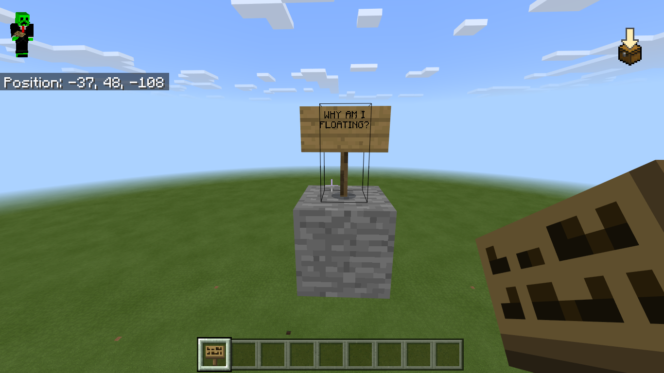 3. Observe that the sign is floating without any blocks around it.