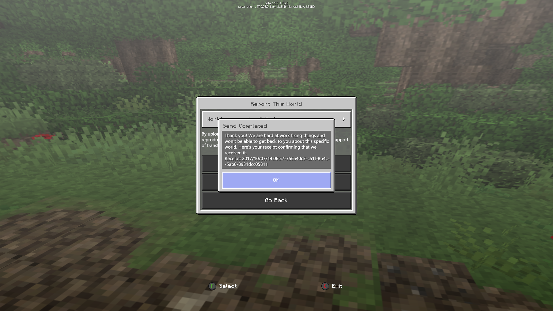 If you participate in the beta. Can you upload your world to the developers and mention the receipt number in this report or take a screenshot of the receipt and add it to the ticket?