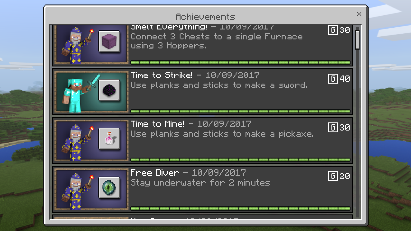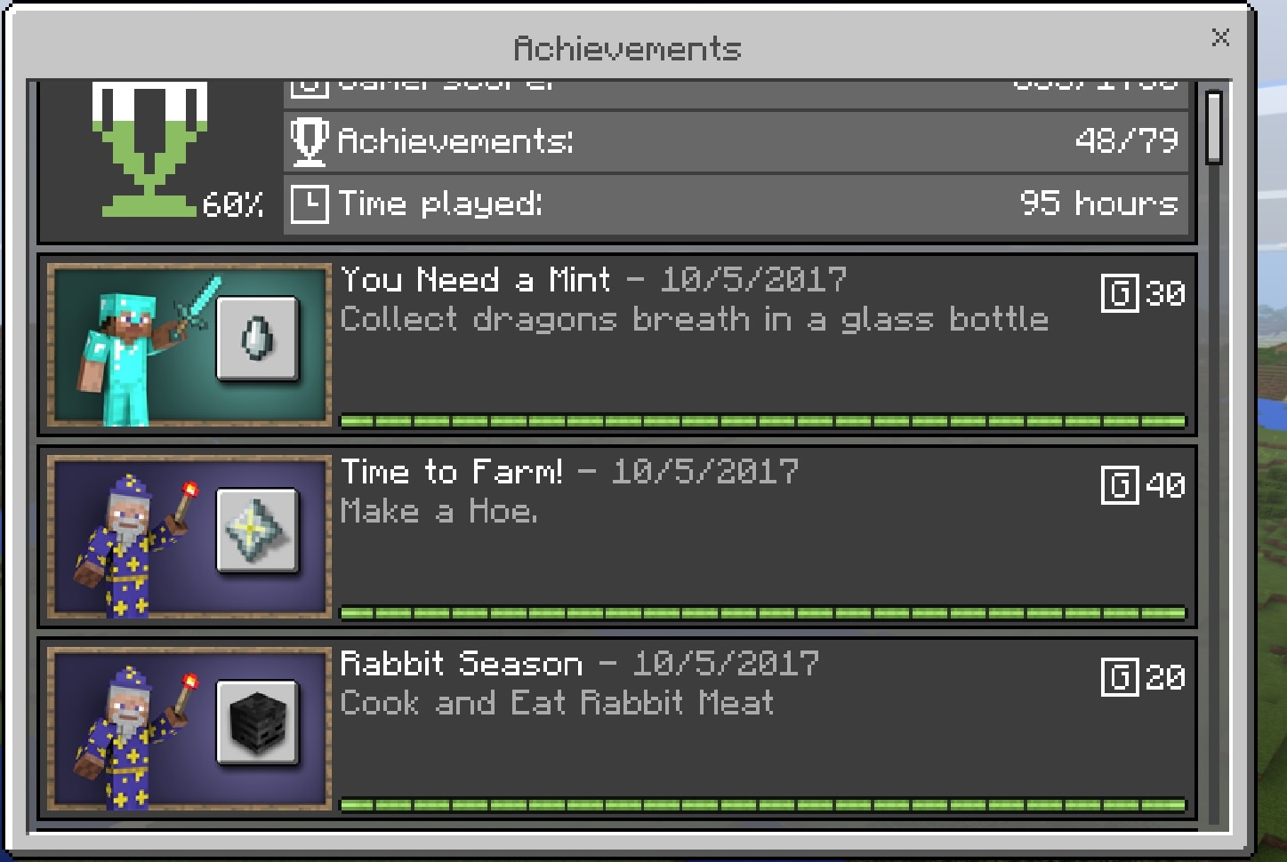 I got on today and noticed all my achievements are messed up. I have not collected Dragon's Breath in a bottle but was something I was working towards doing tonight, including going to the end and killing/respawning the ender dragon.