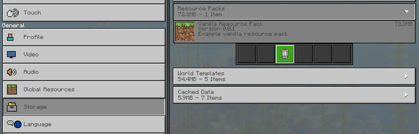 Select the item you want to delete (I'm using the example Vanilla resource pack here)