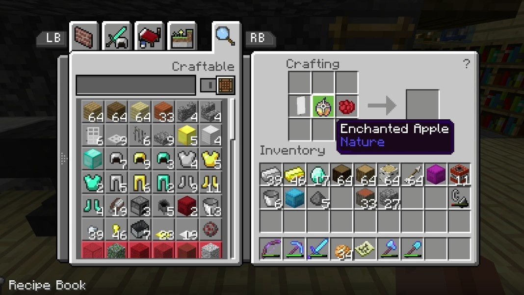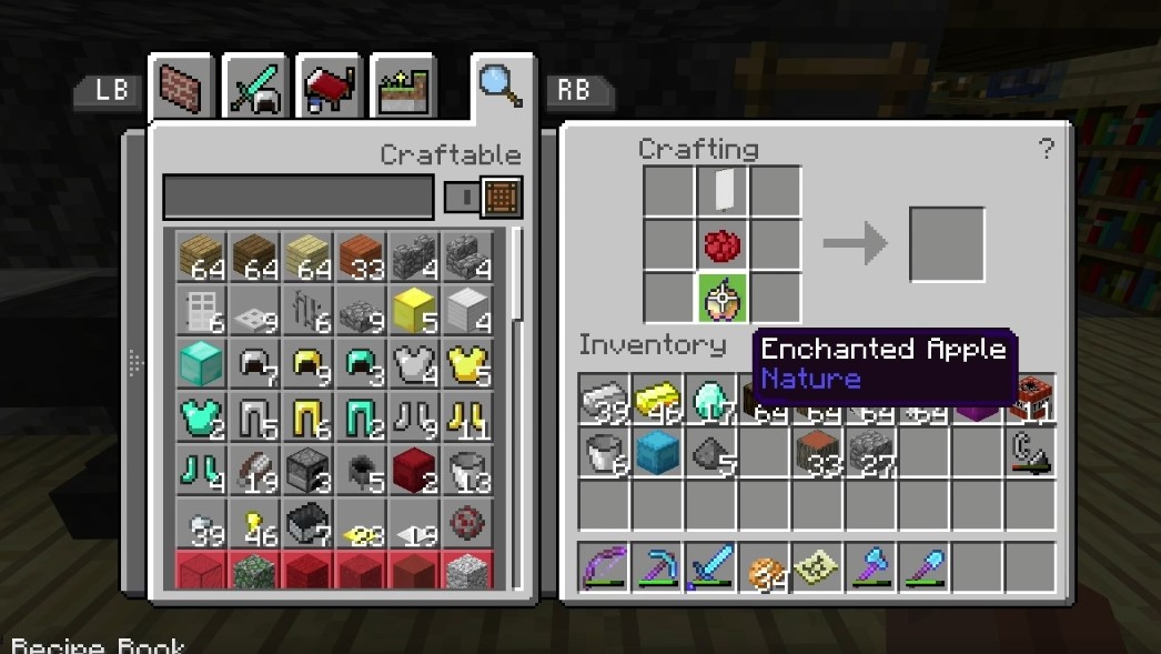 Using an enchanted apple and a banner, the Mojang symbol cannot be crafted on a banner.