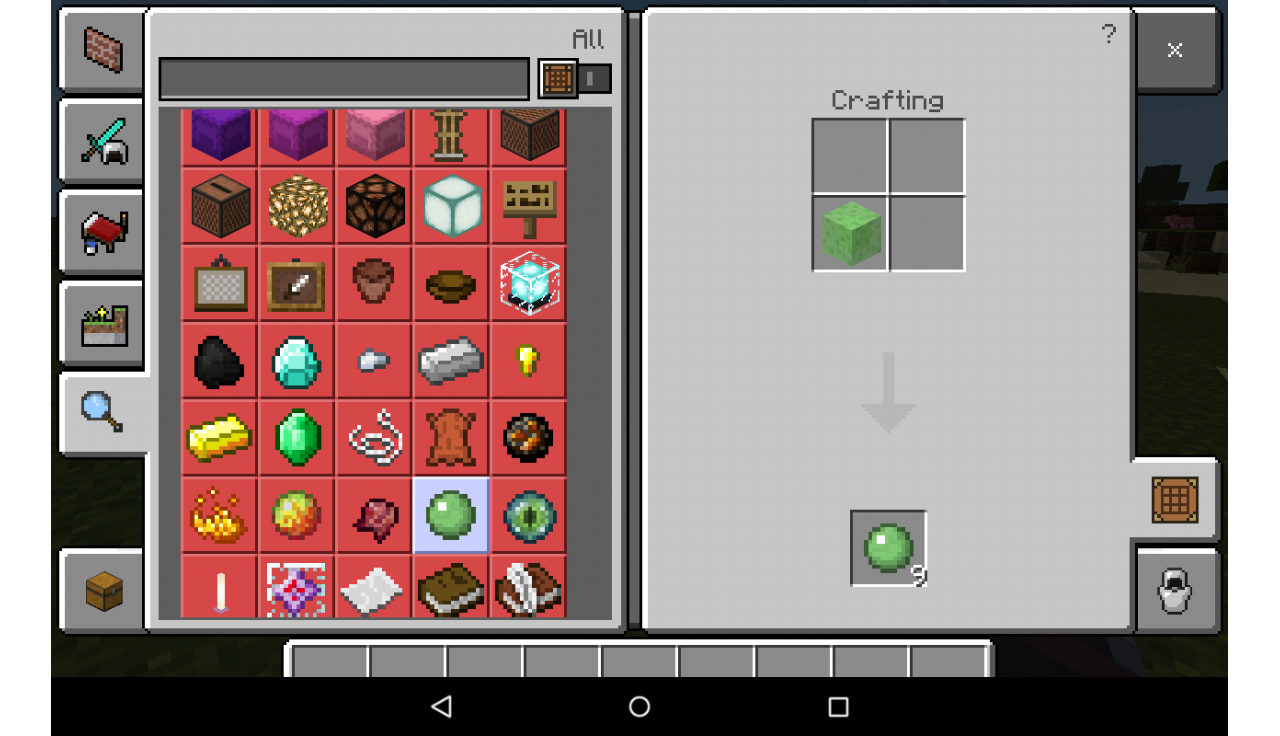 In the example: I choose Slimeball, take the Slime Block, put it down one, and than I can take it.