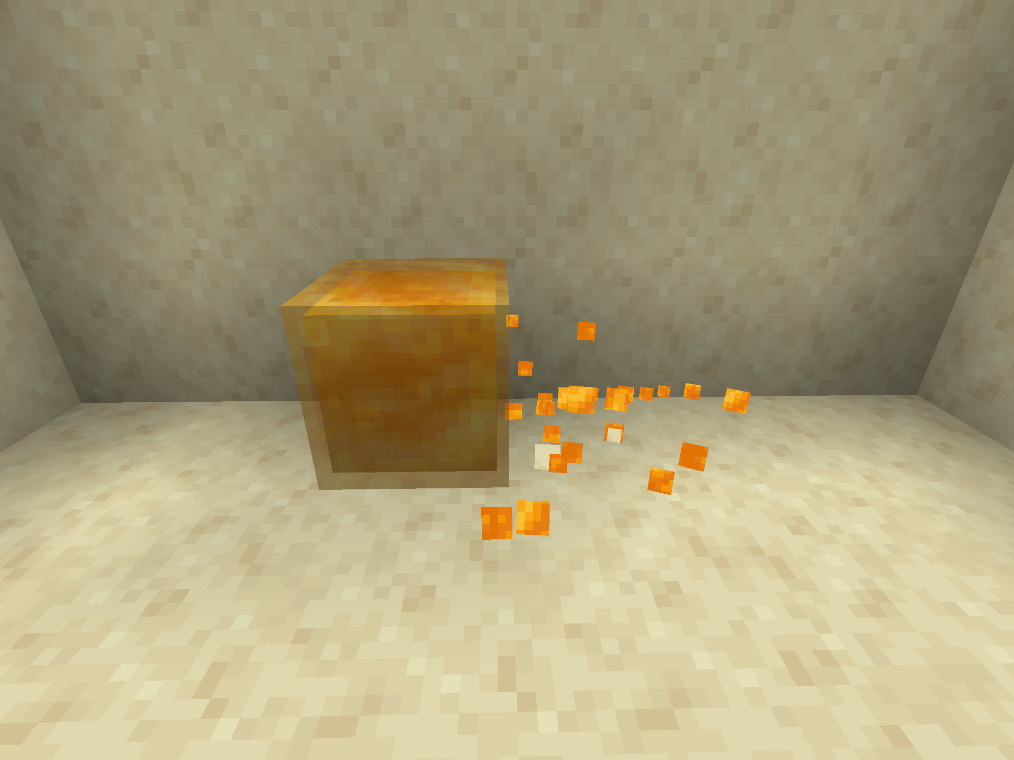 The particles emitted by translucent blocks such as stained glass, ice, slime blocks and honey blocks when broken, sprinted on or fallen on from a height are completely opaque, despite the blocks they originate from being translucent.