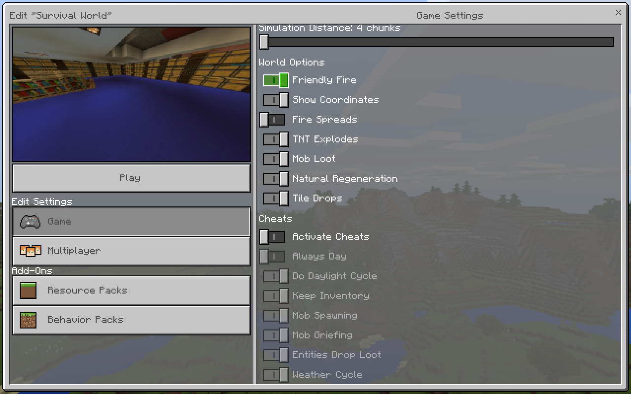 Samsung Galaxy Tab 4 - Have one survival world where achievements are there... but when looking at cheats ( disabled ) but the keep inventory is enabled. Don't know what happened but want to play "ligit" so trying to turn it off