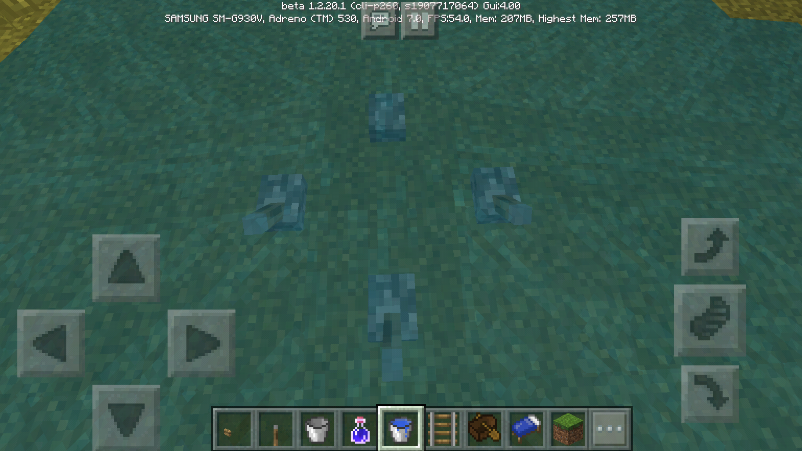 Buttons act as slabs and although they can be placed in a water source block they block flowing water which shouldn't be how they work since levers, repeaters, and comparators all allow water to follow over them and buttons should work the same way. It will also be much more useful for redstone.