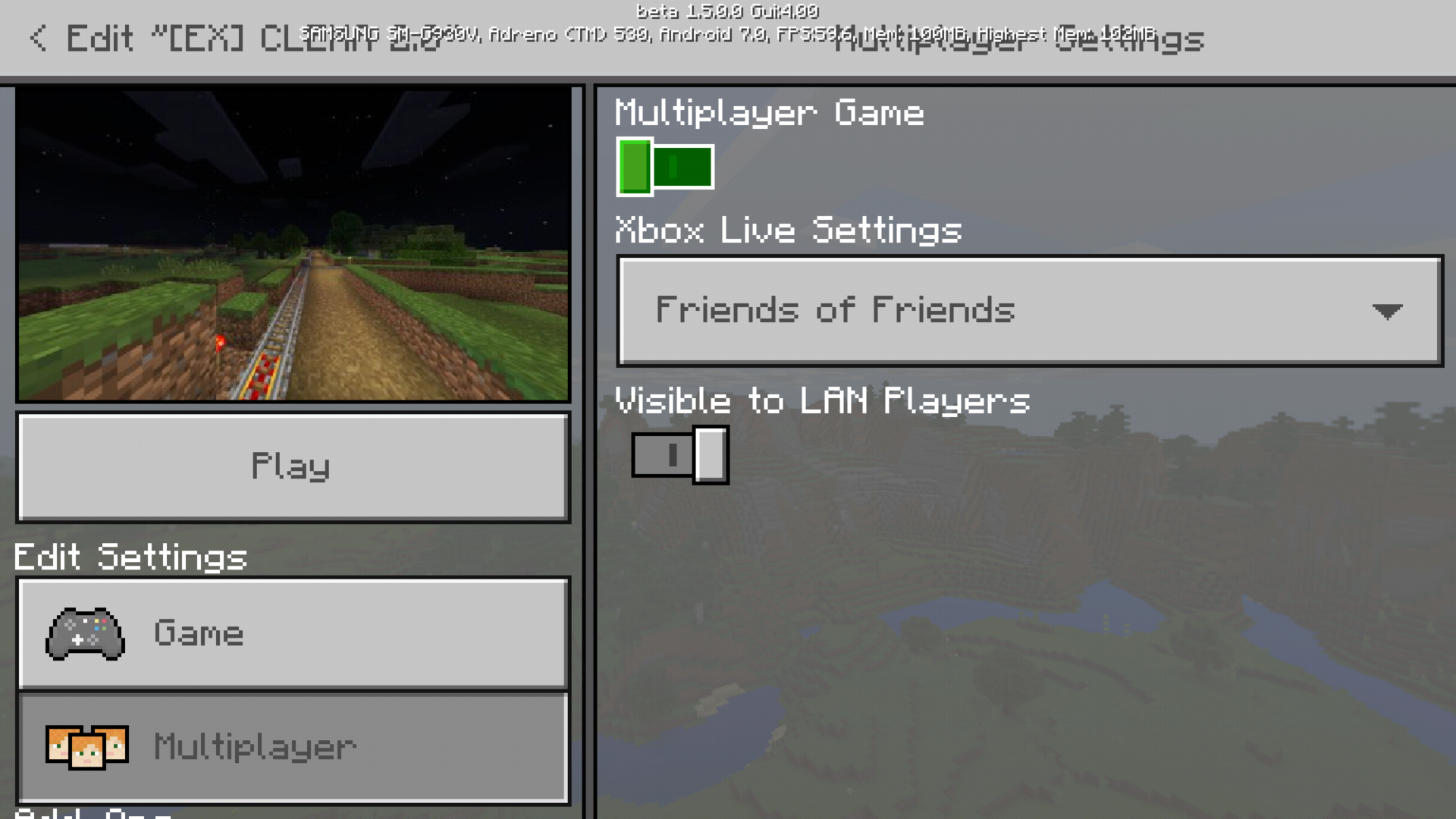 I will add that I am accessing the settings before I enter the world, and not the unaccessible greyed out multiplayer settings of the pause menu.
