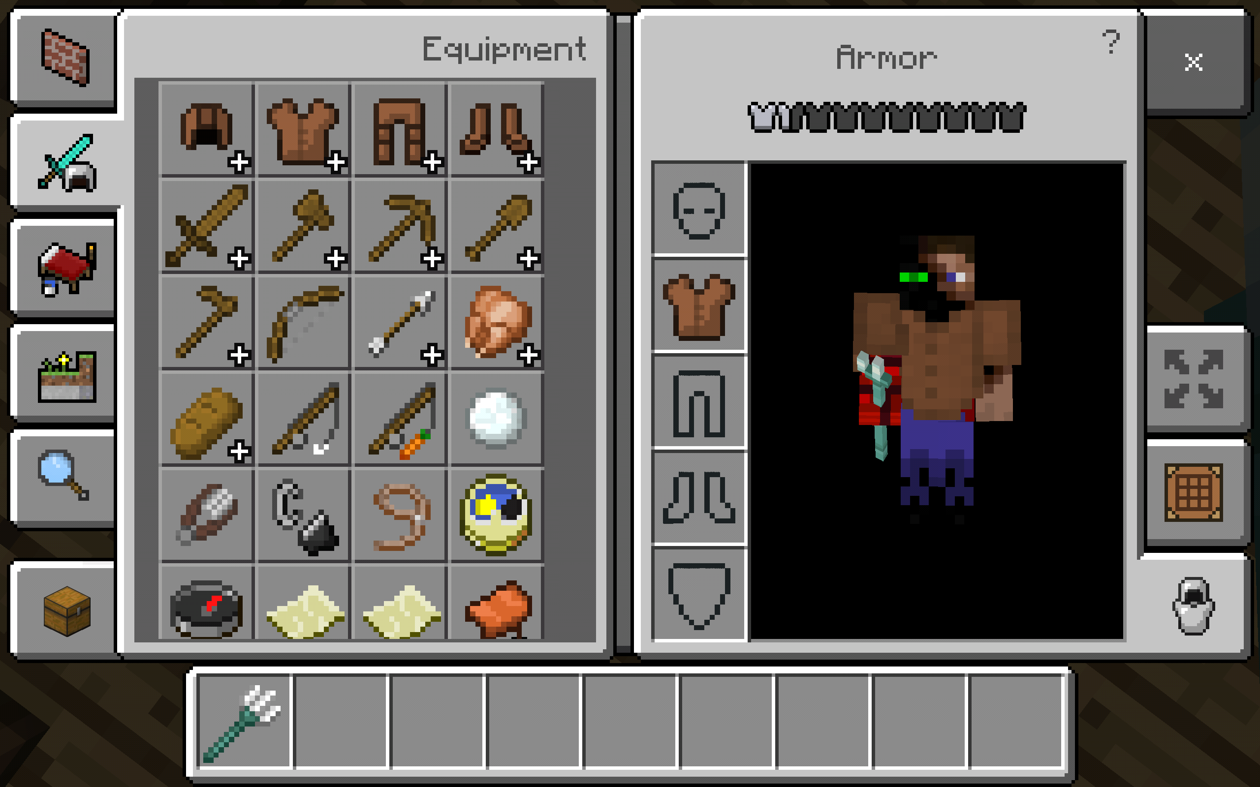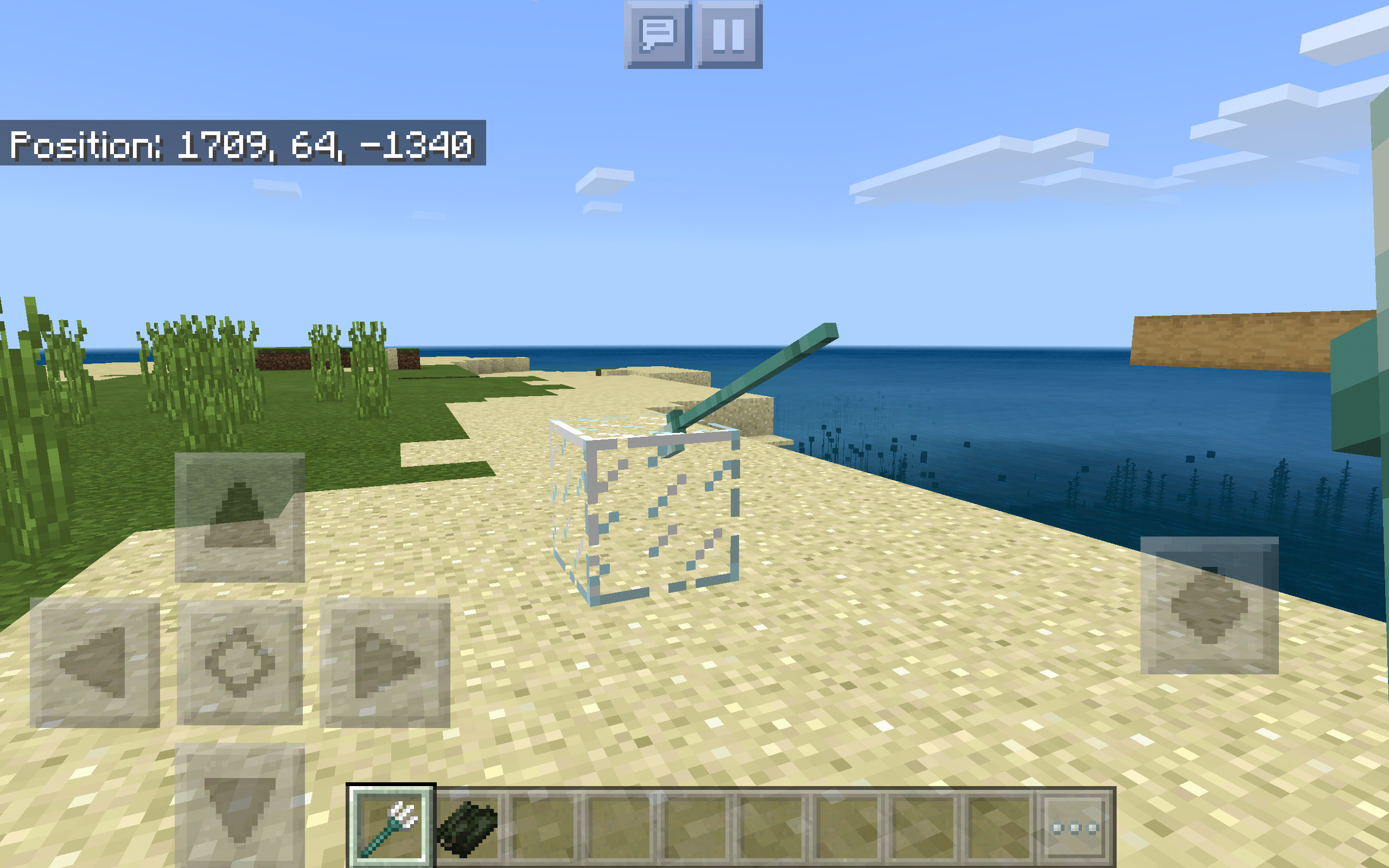 I found this glitch while using experimental features. During the event of this glitch, Tridents have 2 points, not three (which is why I called them 'Bidents', Bi=2 and Tri=3) and Drowned do not show overlay on their torso, arms, or legs. I was able to get screenshots of the Bident but not the Drowned.