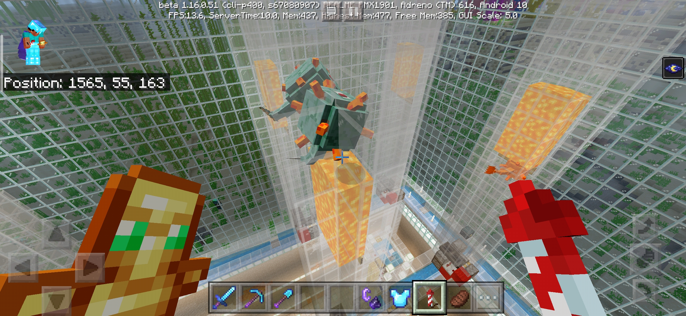I have a guardian farm where guardians spawn and then eventually fall through signs and down a big hole where they die at the bottom. After the 1.4 update, guardians sometimes float in midair shortly after the start of the drop. There is no water around them, but they stay there and bob up and down.