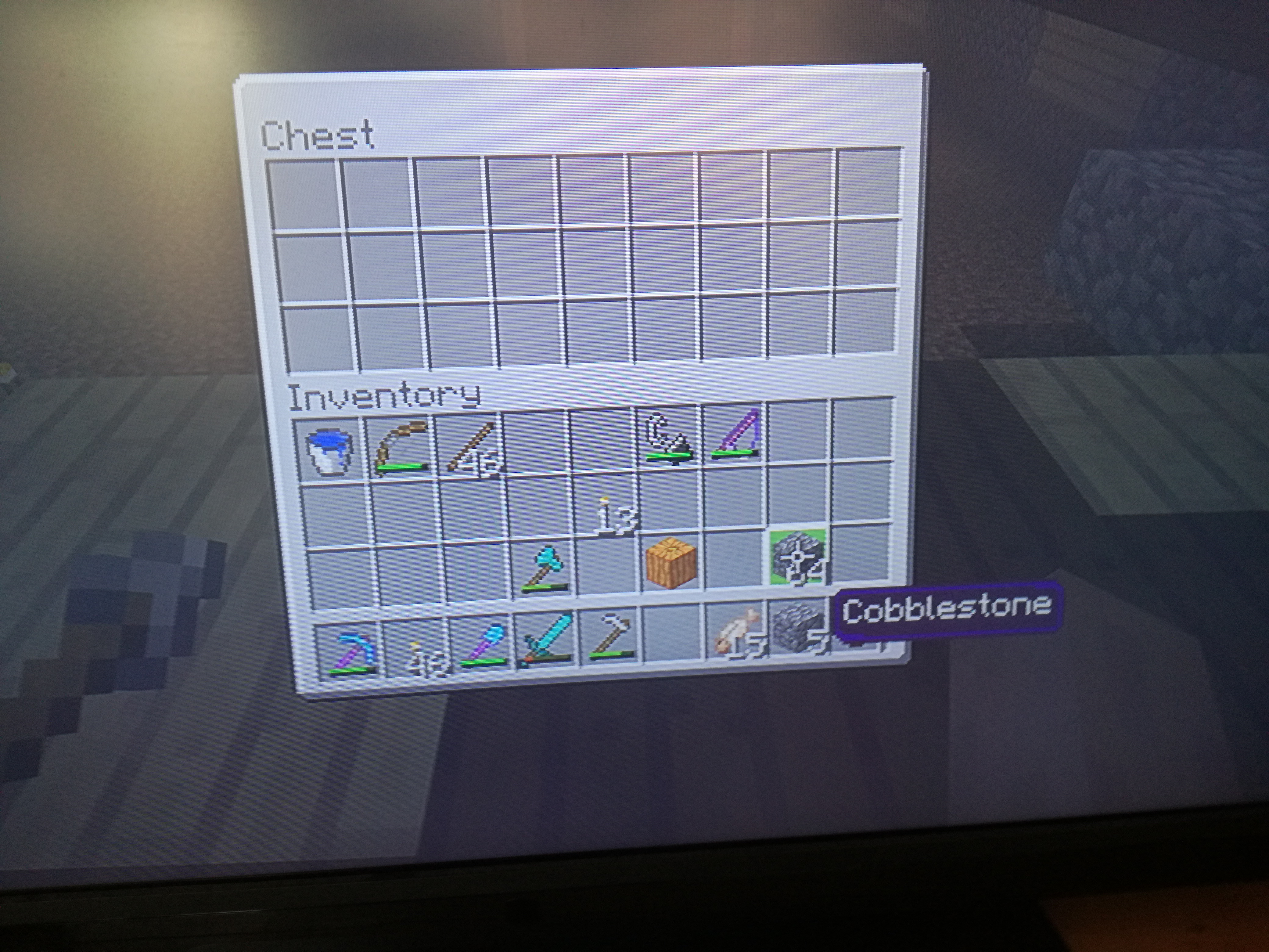 Have over a stack of cobble stone split into 2 inventory slots.