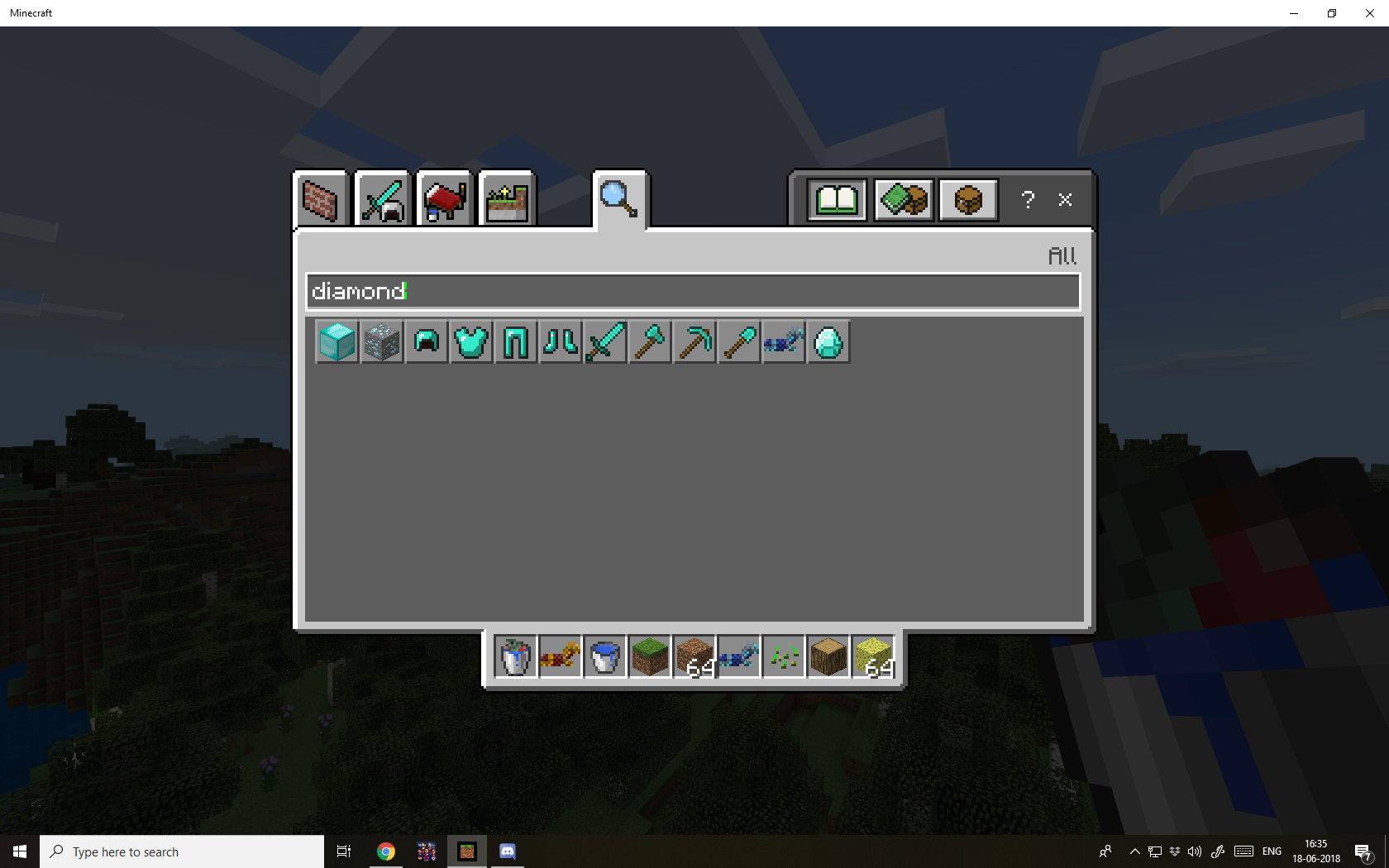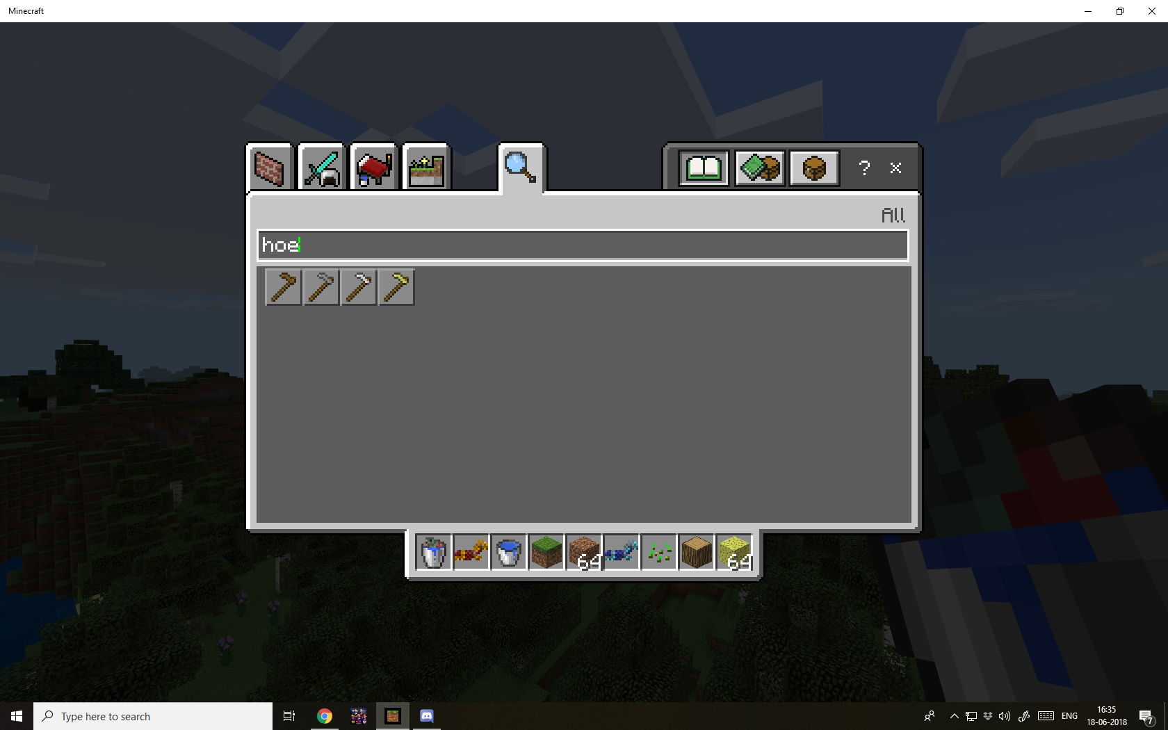 I can't seem to find the diamond hoe from the creative inventory , by either 'diamond' or 'hoe' .