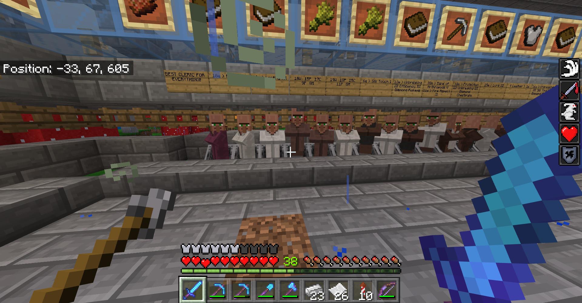 Occasionally mobs don't render when in nearby chunks. This is most obvious in my villager trading hall where entire rows of villagers within a particular chunk won't render when viewed from a particular different chunk, either adjacent or adjacent +1. When you move out of the affected chunk into a different one all the villagers suddenly appear, they also make their honk noise as if they weren't just invisible but weren't loaded. I have found this also affects hostile mobs. The issue tends to resolve itself after a reboot but leaving the game and restarting Minecraft does not fix it. Another characteristic is that often the villagers who ARE visible appear with their backs to you no matter how close you are. I will attach a screenshot or two to illustrate.