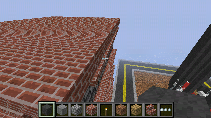 Even though you said These screenshots look normal from the distance, but if you look closer, you can see some weird round, wavy shapes and stripes on the brick roof of the building.